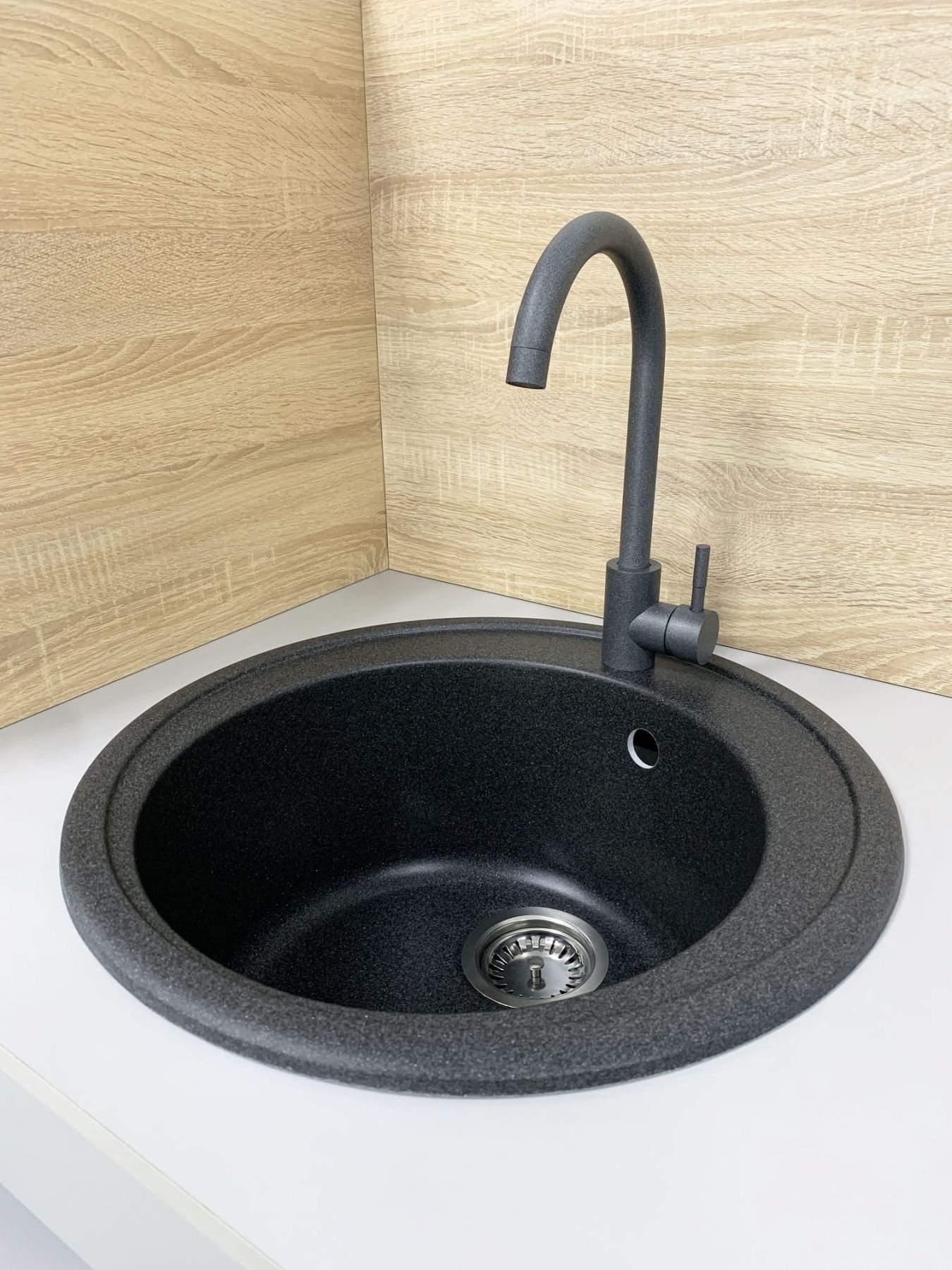 Набір кухонна Adamant Sun, штучний камінь, кругла, без крила, 510x200мм, чаша - 1, врізна, графіт + змішувач