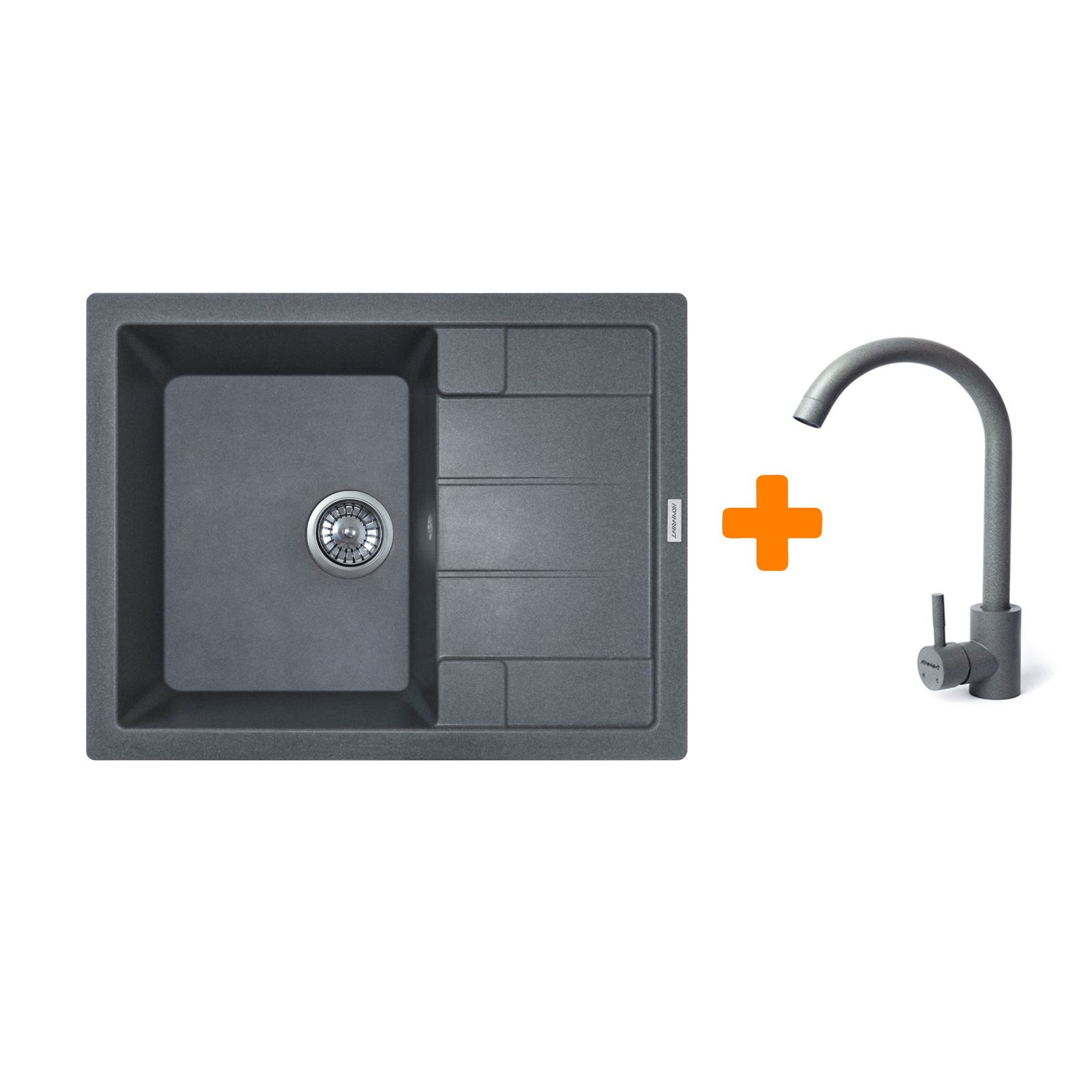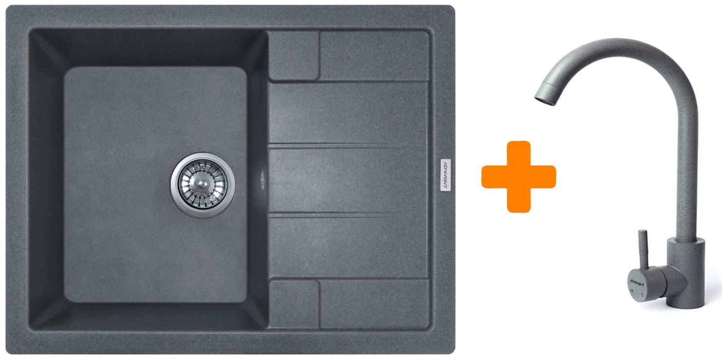Набір кухонний Adamant Anila, штучний камінь, прямокут., з крилом, 645х495х200мм, чаша - 1, врізна, сірий + змішувач