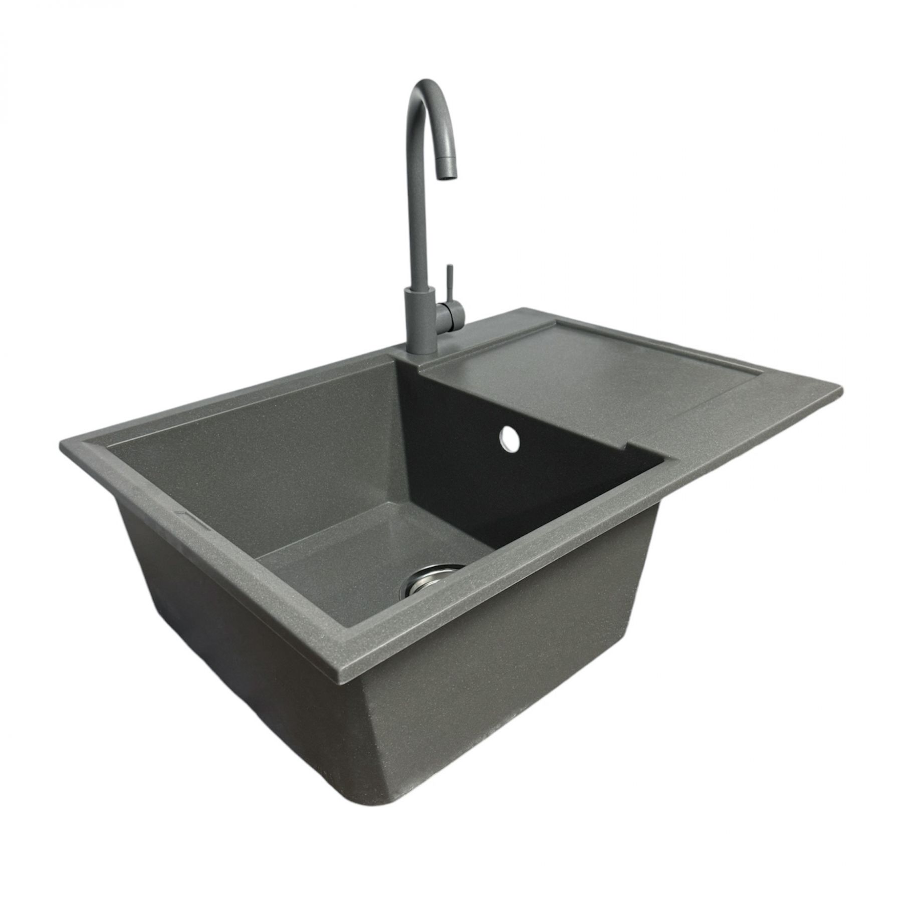 Набір кухонний Adamant Horizon Medium, штучний камінь, прямокут., з крилом, 700х500х230мм, чаша - 1, врізна, сірий + змішувач