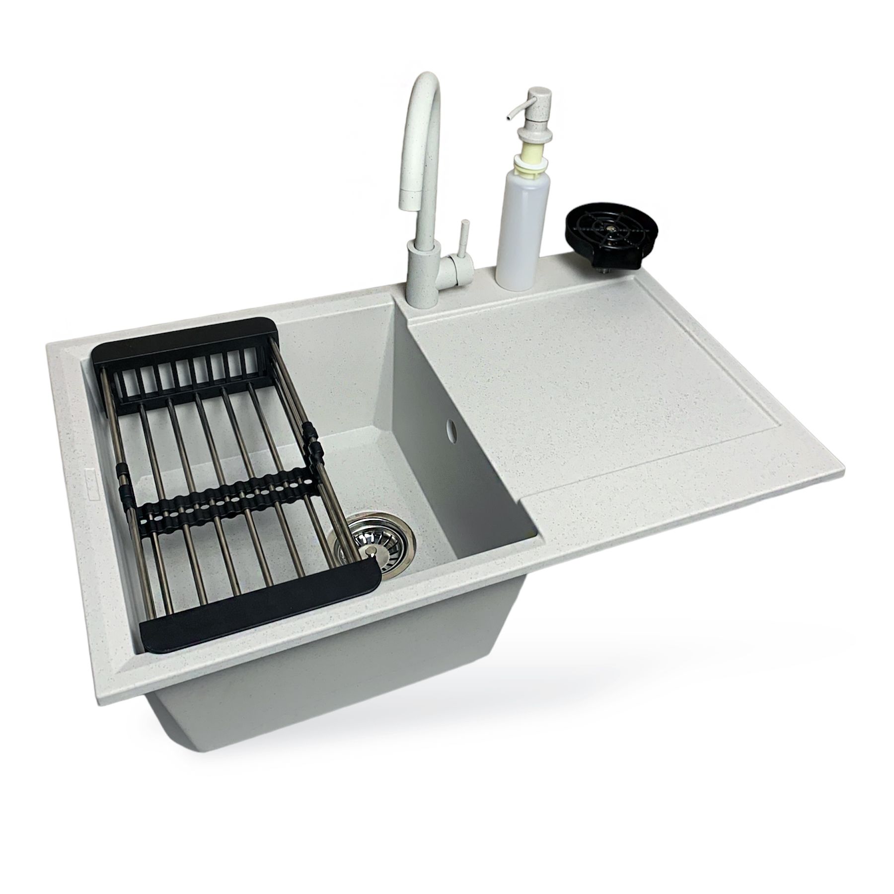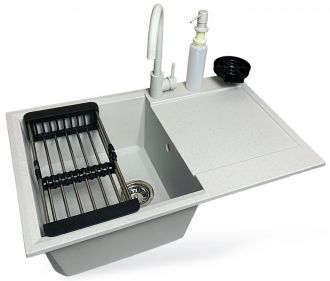 Набір кухонний Adamant Horizon, штучний камінь, прямокут., з крилом, 780х495х230мм, чаша - 1, врізна, Old stone + змішувач + дозатор + ополіскувач склянок + коландер