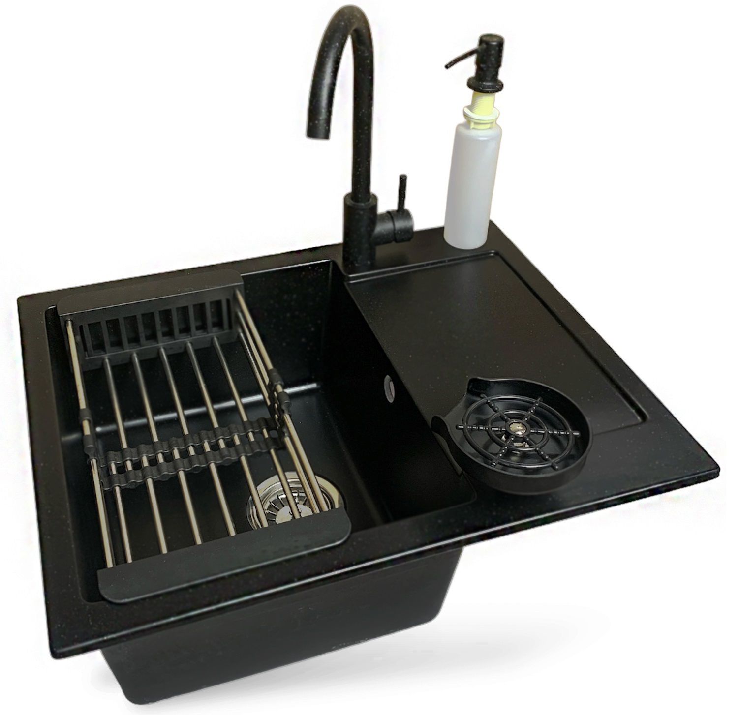 Набір кухонний Adamant Minimal, штучний камінь, прямокут., з крилом, 615х495х200мм, чаша - 1, врізна, антрацит + змішувач + дозатор + ополіскувач склянок + коландер