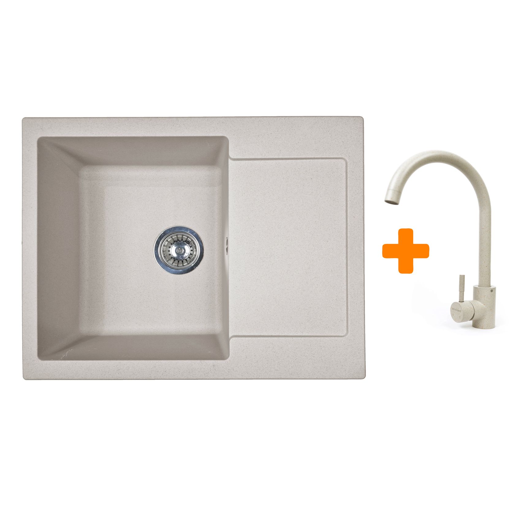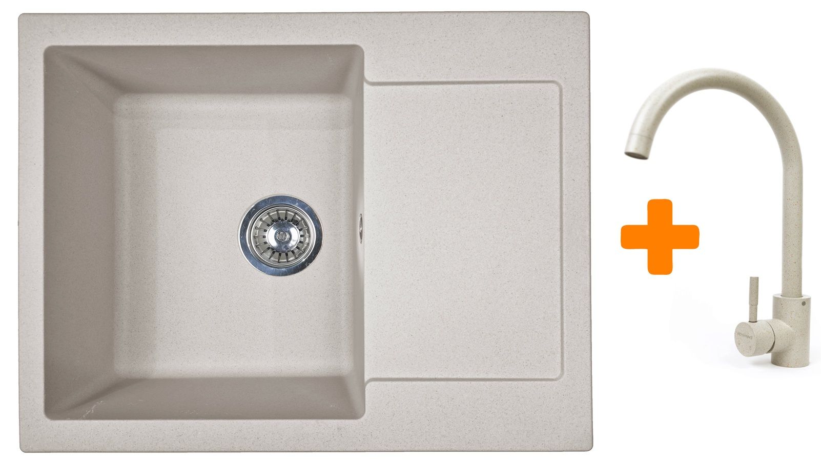 Набір кухонний Adamant Minimal, штучний камінь, прямокут., з крилом, 615х495х200мм, чаша - 1, врізна, Avena + змішувач
