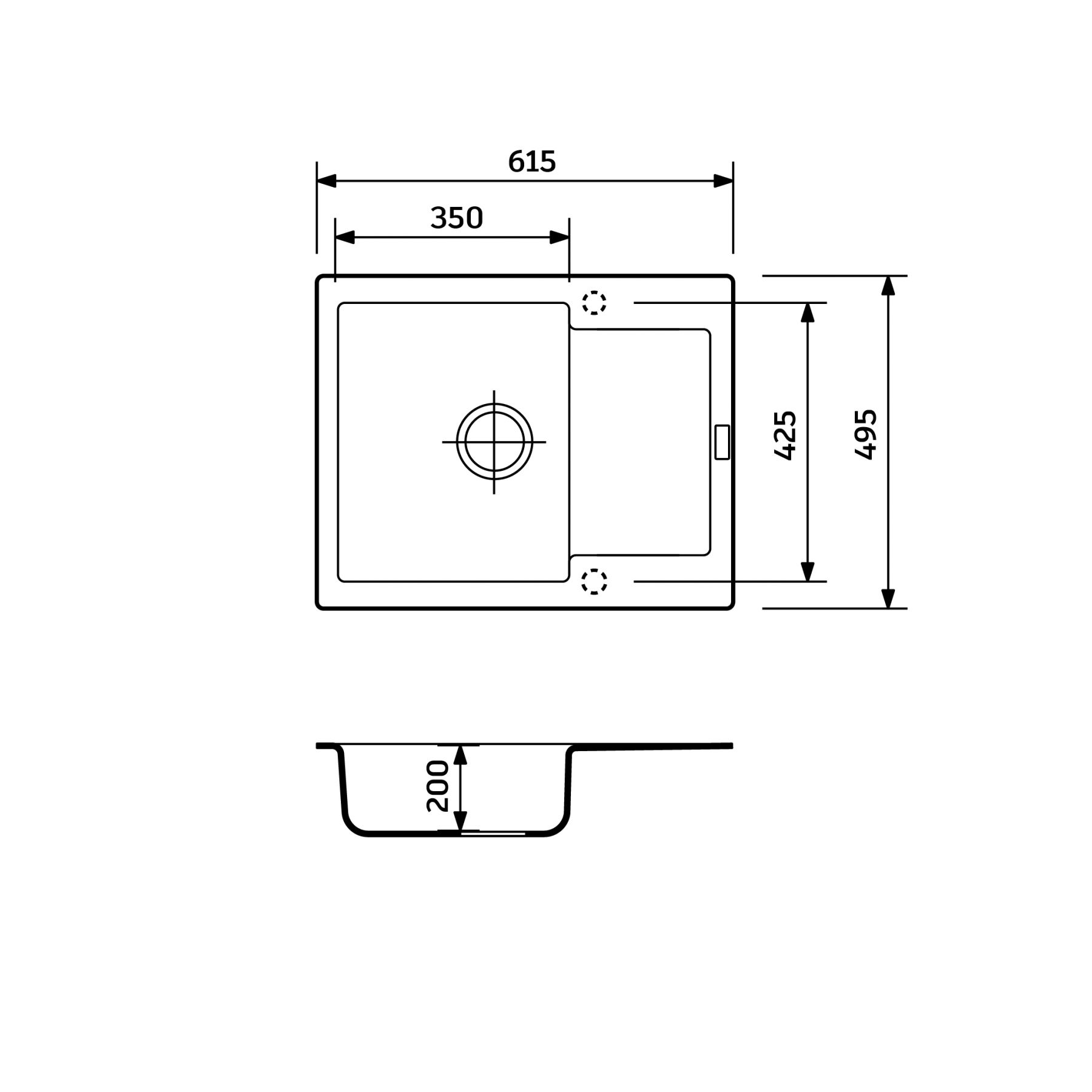 Розміри мийки:615 x 495 x 200