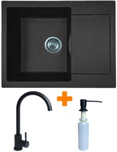 Набір кухонний Adamant Minimal, штучний камінь, прямокут., з крилом, 615х495х200мм, чаша - 1, врізна, чорний + змішувач та дозатор