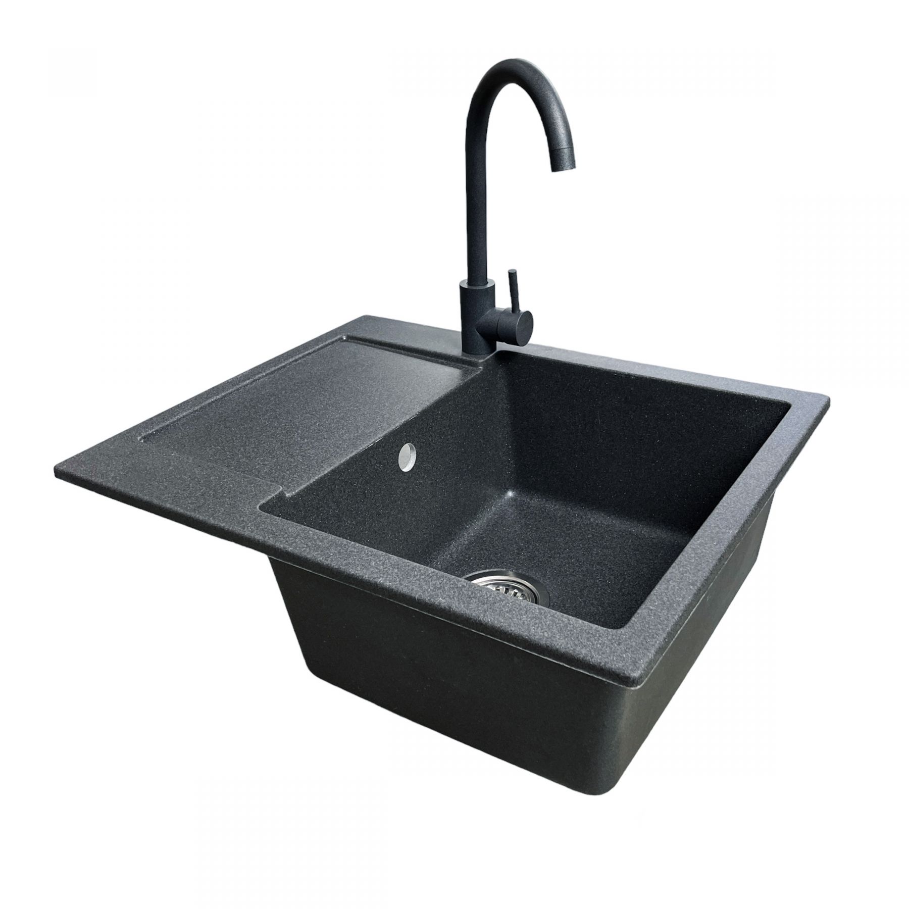 Набір кухонний Adamant Minimal, штучний камінь, прямокут., з крилом, 615х495х200мм, чаша - 1, врізна, графіт + змішувач та дозатор