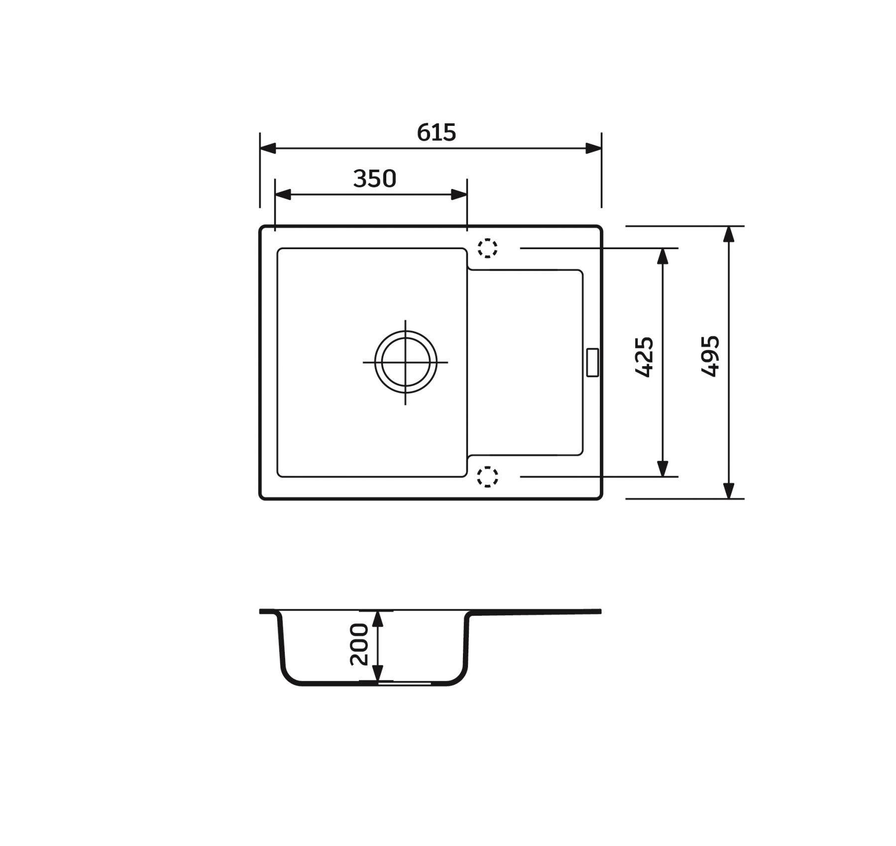 Розміри мийки:615 x 495 x 200