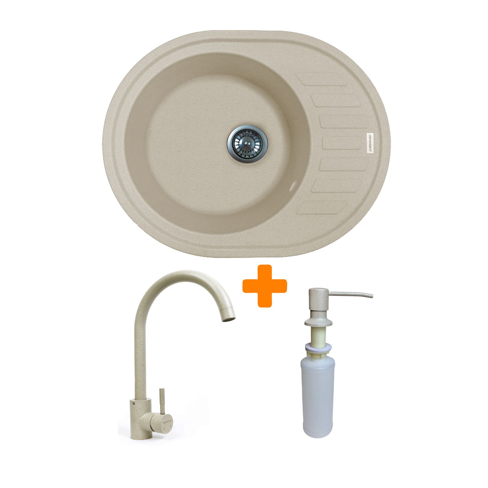 Набір кухонний Adamant Ovum, штучний камінь, овальна, з крилом, 615х495х200мм, чаша - 1, врізна, Avena + змішувач та дозатор