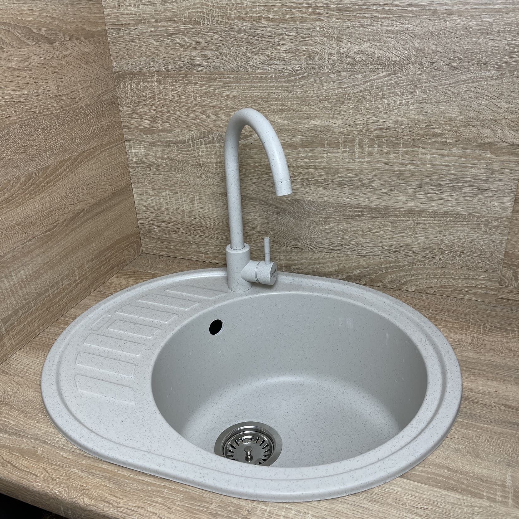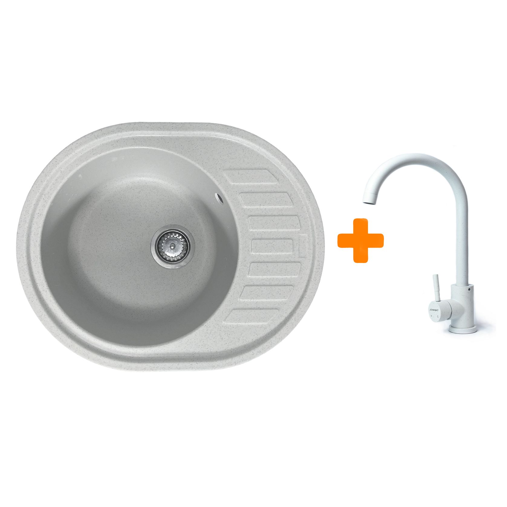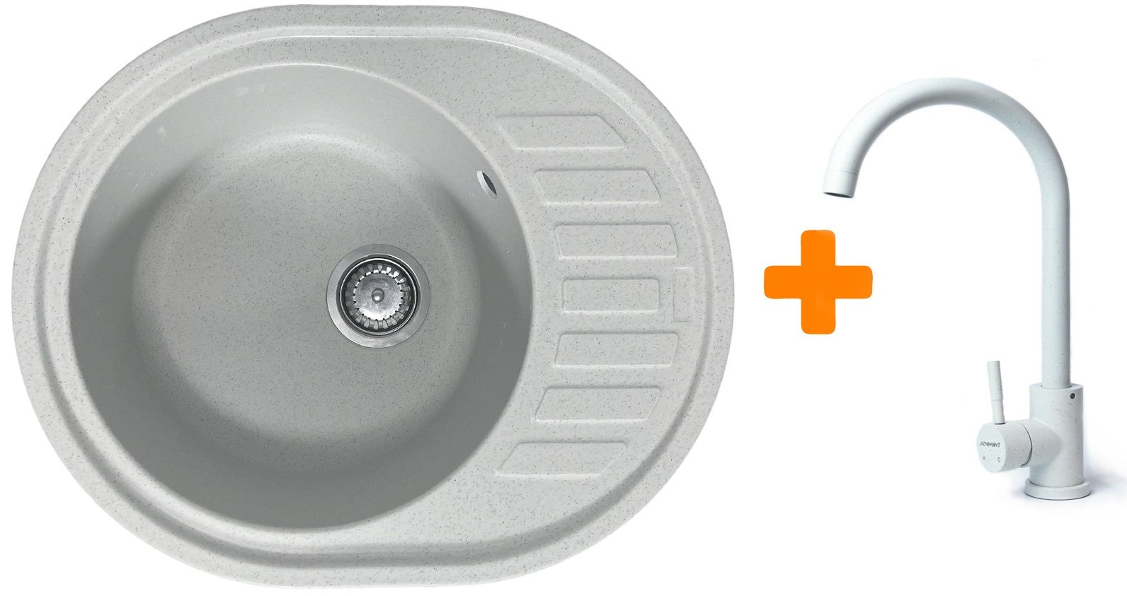 Набір кухонний Adamant Ovum, штучний камінь, овальна, з крилом, 615х495х200мм, чаша - 1, врізна, Old stone + змішувач