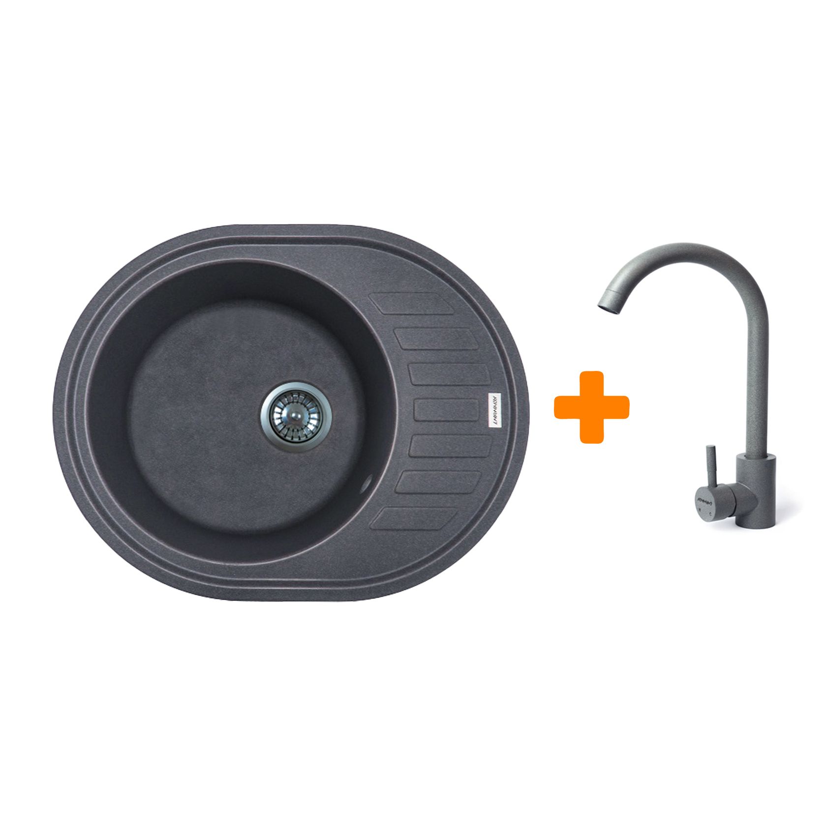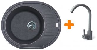 Набір кухонний Adamant Ovum, штучний камінь, овальна, з крилом, 615х495х200мм, чаша - 1, врізна, сірий + змішувач