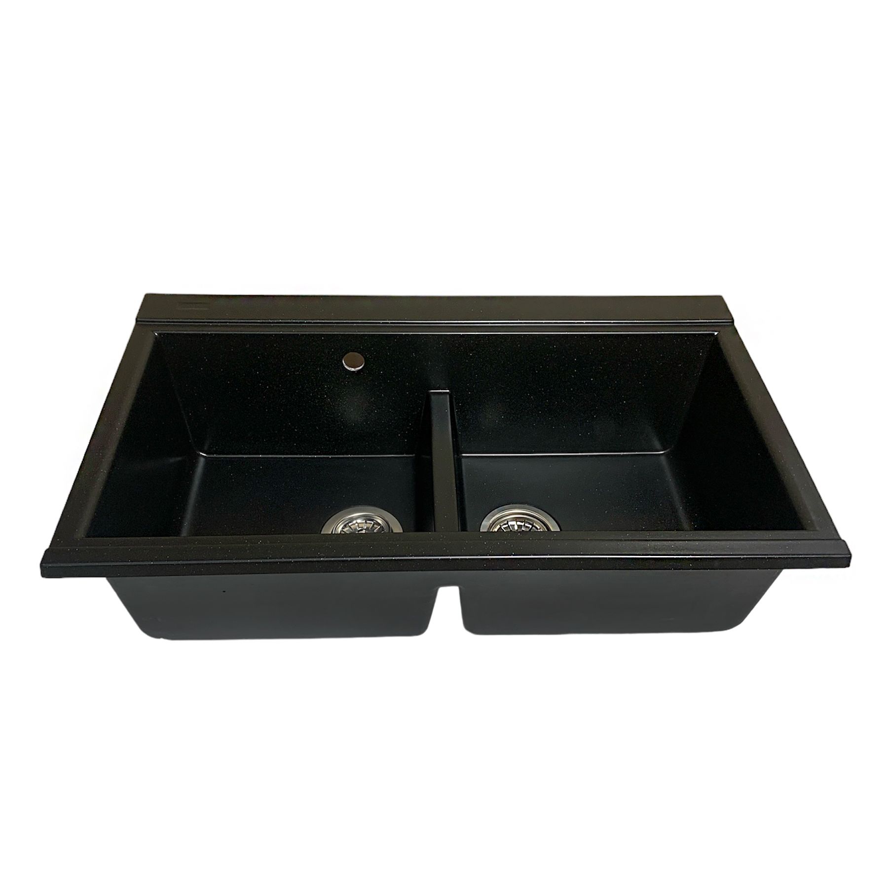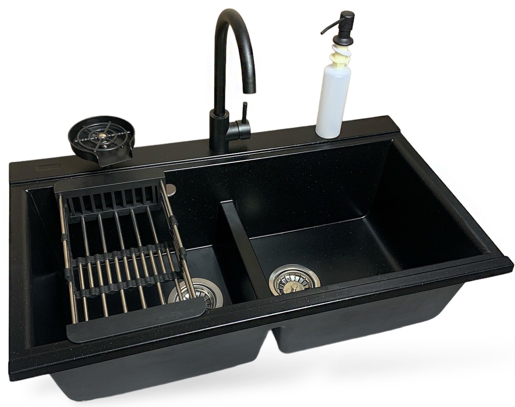 Набір кухонний Adamant Similar, штучний камінь, прямокут., без крила, 885x505x230мм, чаша - 2, врізна, чорний + змішувач + дозатор + ополіскувач склянок + коландер