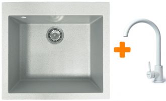 Набір кухонний Adamant Univer, штучний камінь, квадрат, без крила, 560х500х200мм, чаша - 1, врізна, Old stone + змішувач