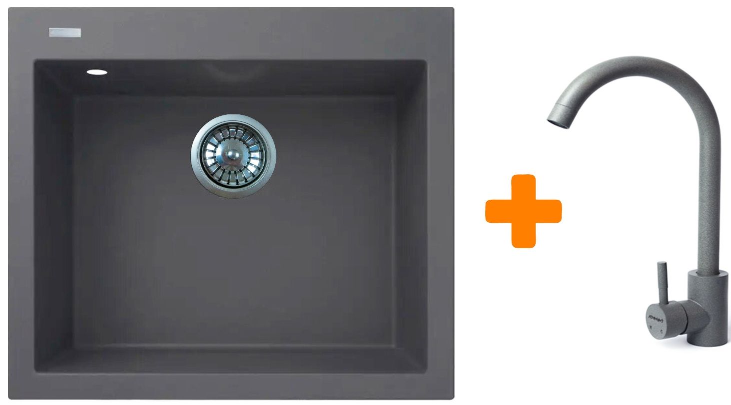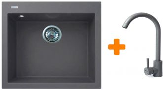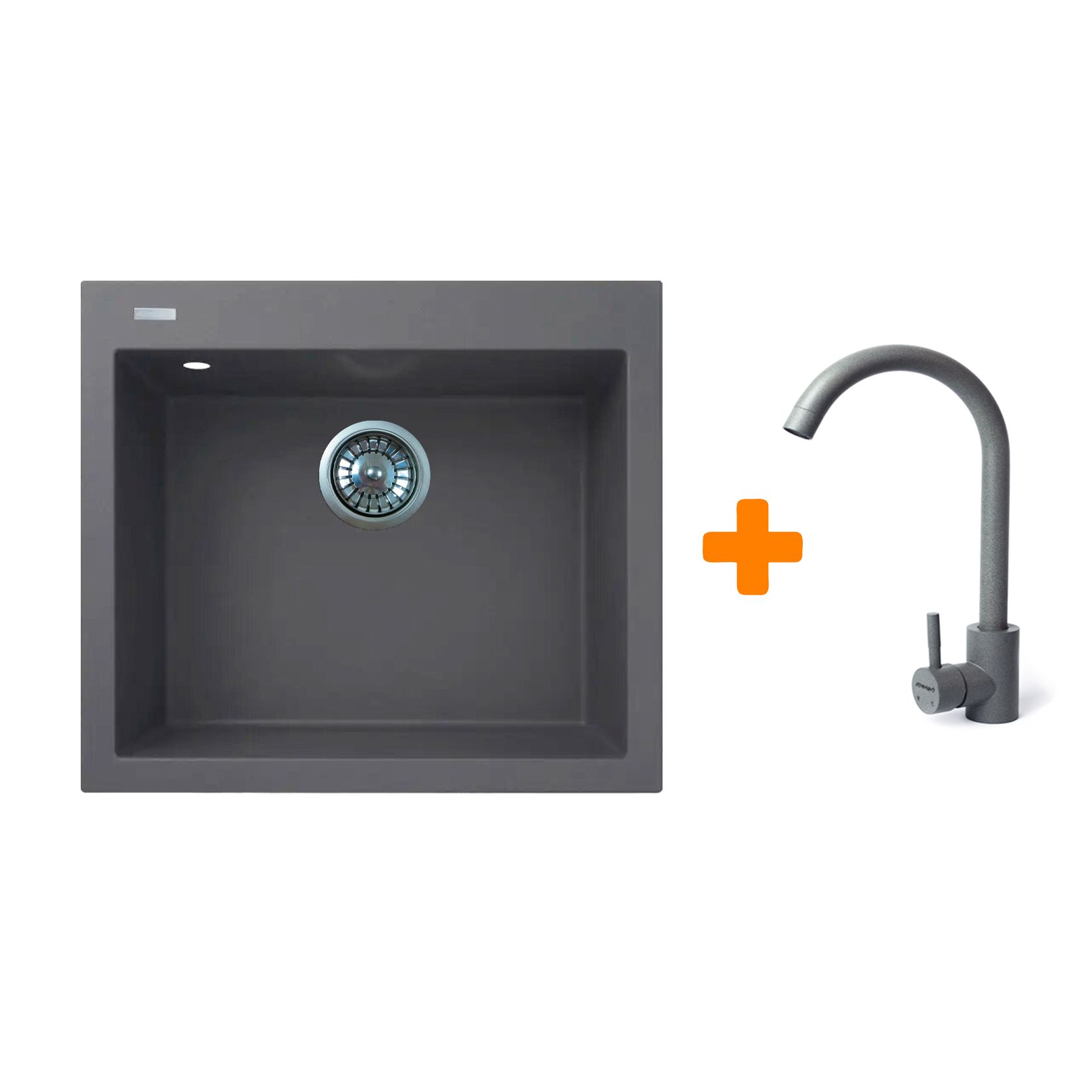 Набір кухонний Adamant Univer, штучний камінь, квадрат, без крила, 560х500х200мм, чаша - 1, врізна, сірий + змішувач