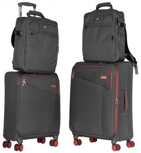 Набір валіз 2E, Trek, (M+S), TSA, 4 колеса, + 2 рюкзаки Cabin (2E-BPET-CABIN-GR), поліестр, сірий