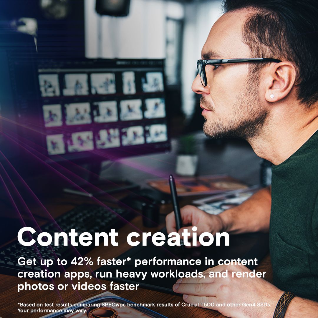 Crucial T500 2TB – потужний SSD-накопичувач формату M.2 з інтерфейсом PCIe 4.0 x4. Забезпечує вражаючу швидкість читання до 7400 МБ/с і запису до 7000 МБ/с. Має високу витривалість – до 1200 ТБW, що робить його надійним вибором для геймерів, творців контенту та професіоналів.