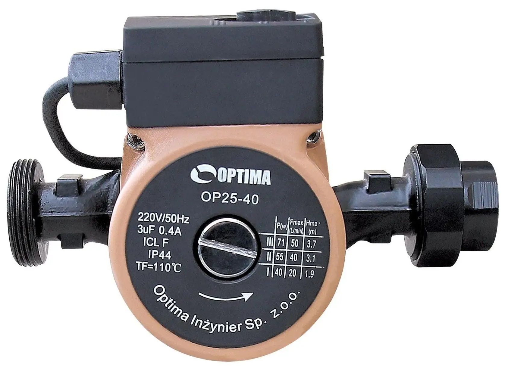 Циркуляційний насос Optima OP25-60 - це циркуляційний насос однофазний з «мокрим ротором» і регульованою швидкістю призначений для застосування в опалювальних системах закритого типу з примусовою циркуляцією або в системах з відкритим розширювальним баком.
