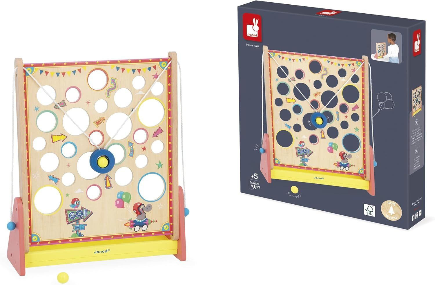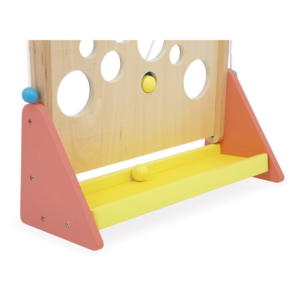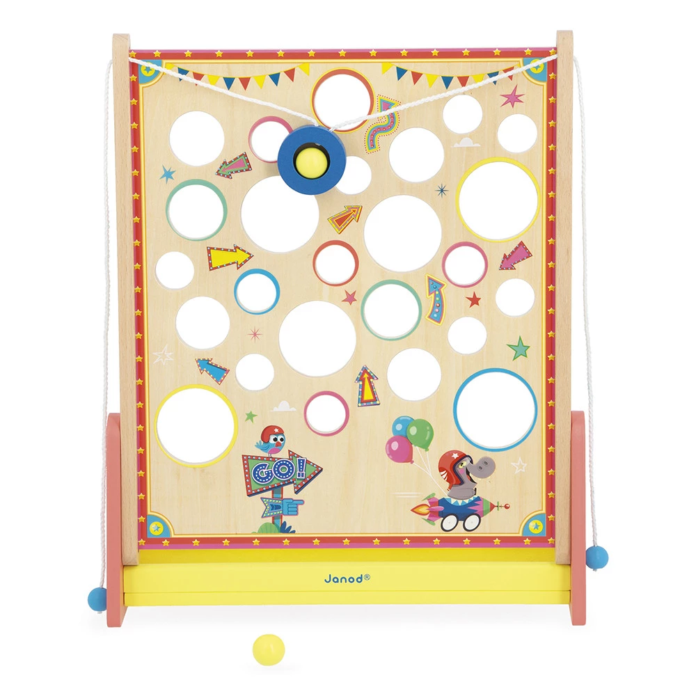 Дерев’яна гра на спритність від 5 років: керуйте двома мотузками й проведіть кульку вгору лабіринтом, уникаючи отворів. Розвиває координацію, увагу й терплячість, підходить для сімейних змагань. У комплекті 2 дерев’яні кульки та підставка з фетровим покриттям для тихого падіння. Виготовлено з дерева з сертифікацією FSC™.
