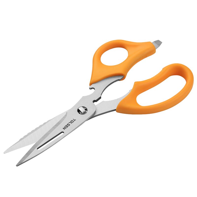Ножиці багатофункціональні Профі довжиною 220 мм завдяки своїй конструкції підходять для використання в якості основних побутових і кухонних інструментів: ножиць, дрібного ножа, горіхоколу, кабелерізу, кусачок, ножа для чищення риби, відкривачки для пляшок, відкривачки для банок, лущільника, плоскої викрутки.