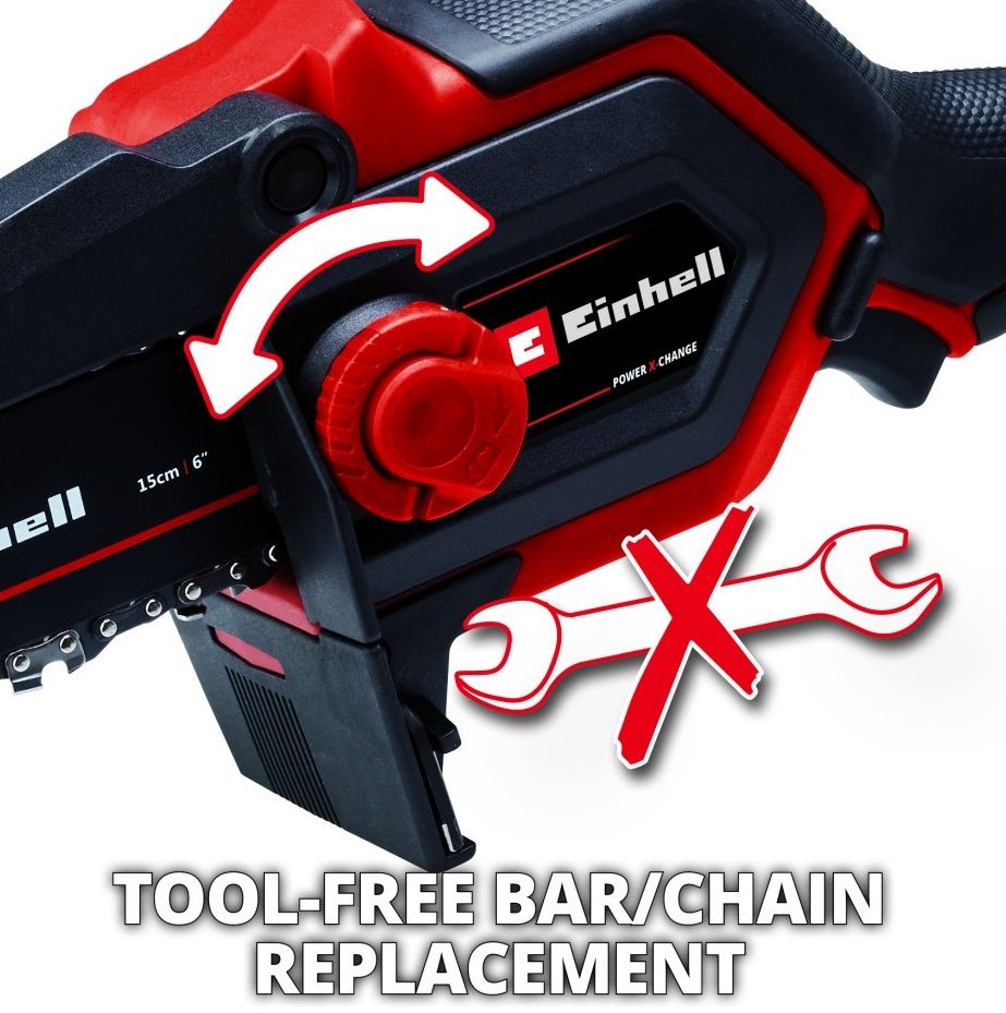 Акумуляторна обрізна ланцюгова пила Einhell GE-PS 18/15 Li BL Kit — це зручний інструмент для обрізки дерев і кущів, а також для подрібнення зелених живців і для дрібних тесаних робіт. Компактна пила є членом сімейства Einhell Power X-Change і може поєднуватися з усіма акумуляторами та зарядними пристроями сімейства систем.