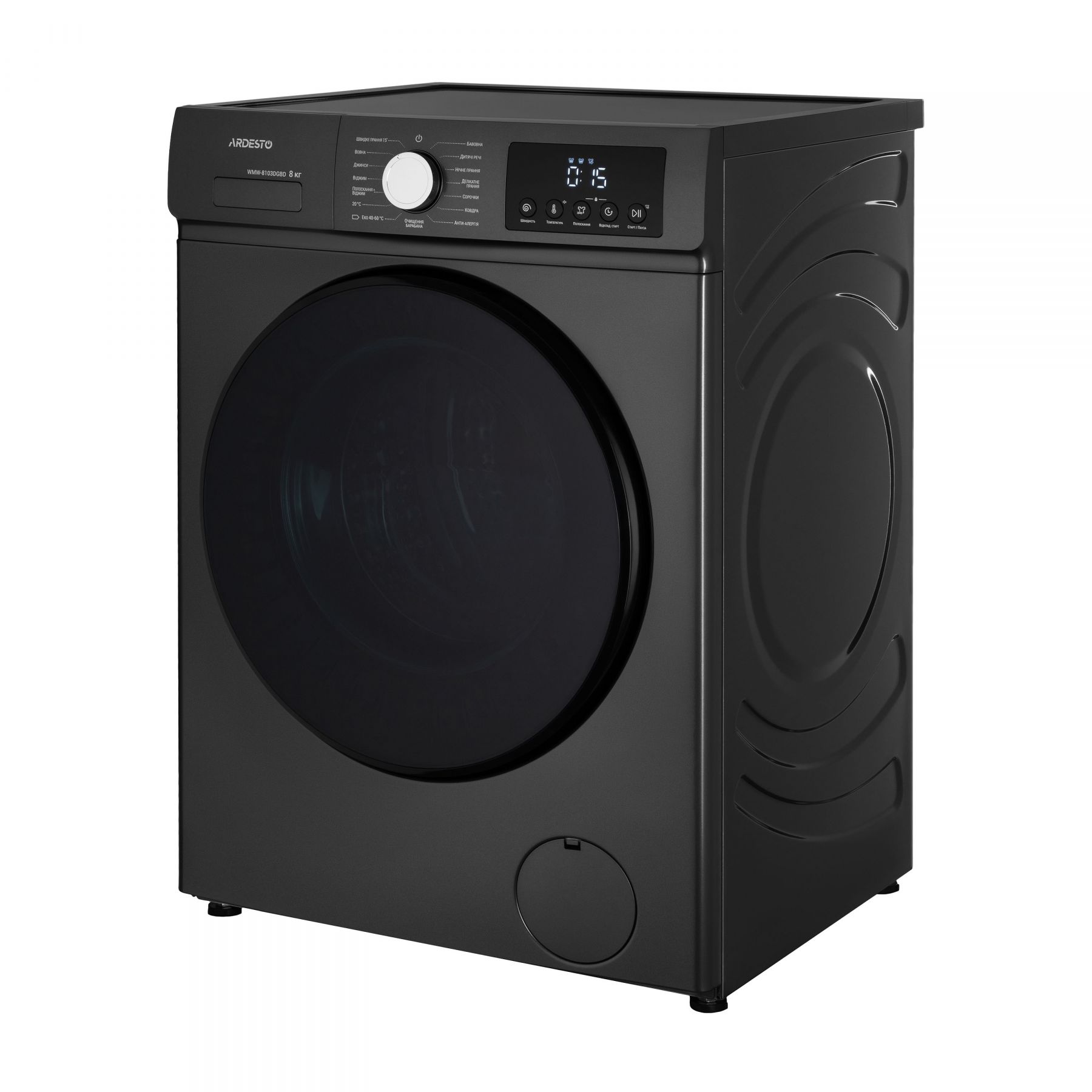 Фронтальна пральна машина ARDESTO Black Mars з інверторним двигуном BLDC вміщує 8 кг білизни та працює зі швидкістю до 1 200 об/хв. Модель вирізняється енергоефективністю класу А+++ та низьким рівнем шуму – 62 дБ під час прання і 75 дБ за віджимання. Передбачено 16 програм, з-поміж яких: «Еко 40–60 °C», «Делікатне прання», «Речі дітей», «Вовна», «Ковдра», «Джинси» та «Швидкий цикл 15'». Функція прання парою освіжає тканини й усуває алергени, а цифровий дисплей, відкладений старт, блокування панелі й можливість додавання білизни під час циклу забезпечують зручність і контроль процесів.