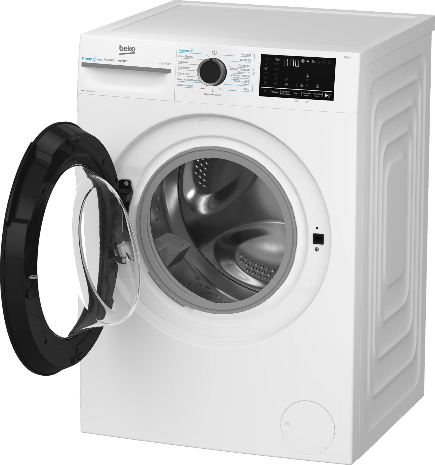 Пральна машина Beko фронтальна, 8кг, 1400, A, 55см, дисплей, інвертор, пара, білий