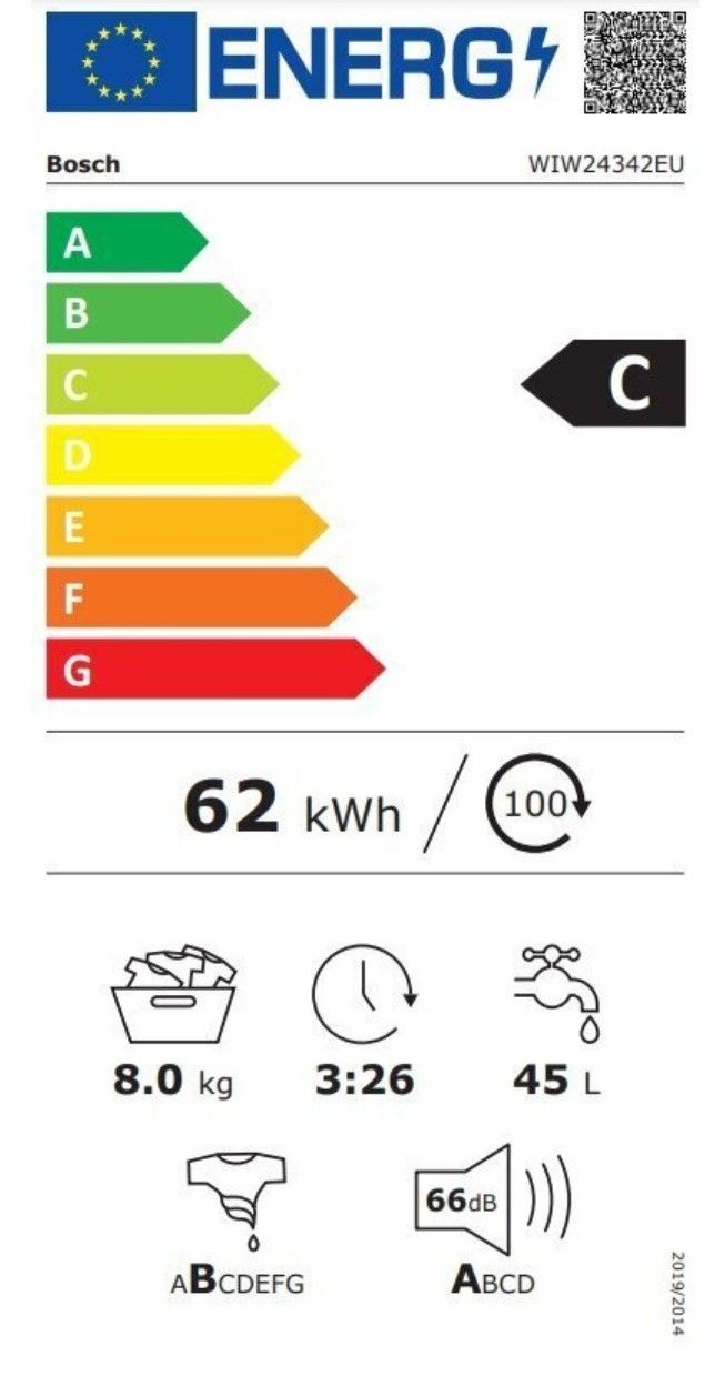 Вбудована пральна машина Bosch WIW24342EU поєднує тиху роботу й енергоощадність завдяки двигуну EcoSilence Drive. AquaStop забезпечує захист від протікань протягом усього строку служби приладу. SpeedPerfect скорочує тривалість програм до 65%, а AllergyPlus підтримує гігієнічні умови прання при 40–60 °C. Барабан VarioDrum дбайливо ставиться до тканин, ActiveWater точно дозує воду, функції дозавантаження та відтермінування старту додають зручності.