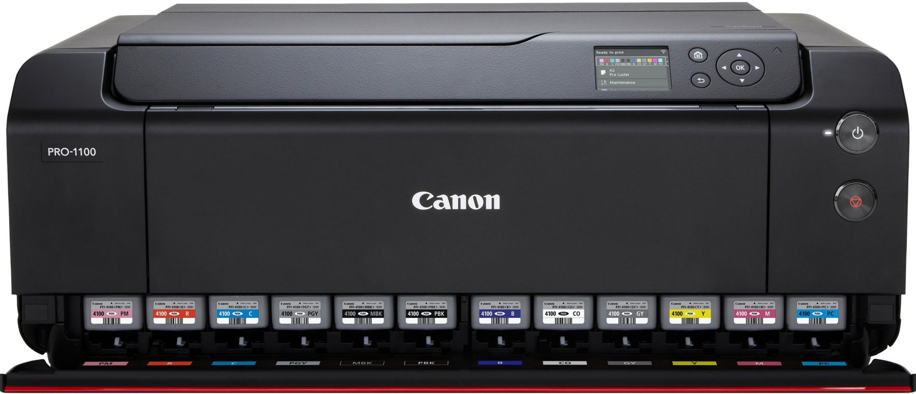 Canon imagePROGRAF PRO-1100 — це професійний принтер формату A2 з 12 пігментними чорнилами LUCIA PRO II для максимальної точності кольорів. Друк фотографії формату A2 займає близько 3 хвилин 40 секунд із роздільною здатністю до 2400×1200 т/д. Пристрій підтримує широкий спектр носіїв із щільністю від 64 до 400 г/м². Принтер оснащений Wi-Fi, Ethernet і USB, що забезпечує зручне підключення та сумісність із Windows, macOS і мобільними ОС.