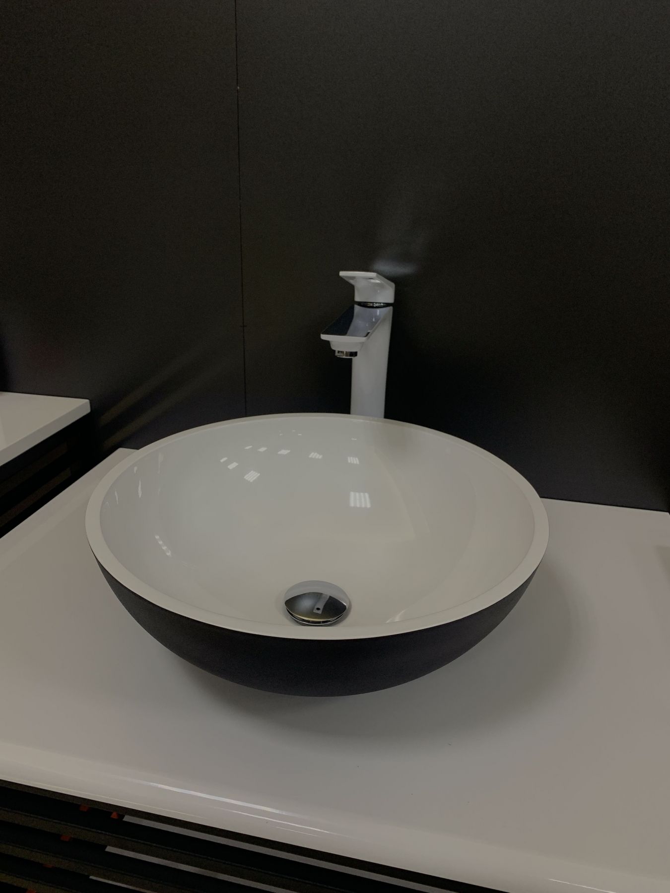 Раковина, умивальник Adamant KREIS, штучний камінь, кругла, без отвору для змішувача та переливу, 420х150мм, накладний, чорно-білий