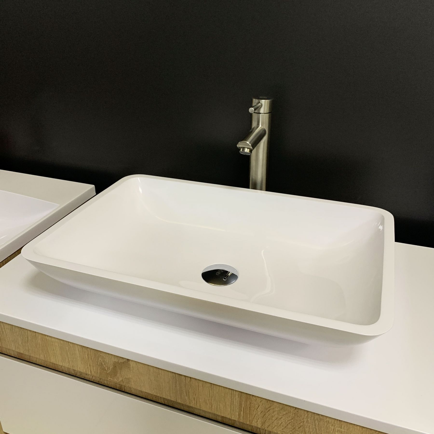 Раковина, умивальник Adamant LOWER, штучний камінь, прямокут., без отвору для змішувача та переливу, 560x360x100мм, накладний, білий