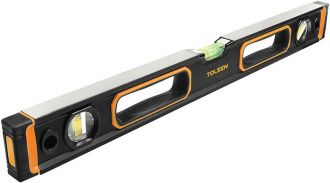 Рівень Tolsen Профі, 40см, 3 капсули, алюмінієвий, з магнітами, отвори для руки