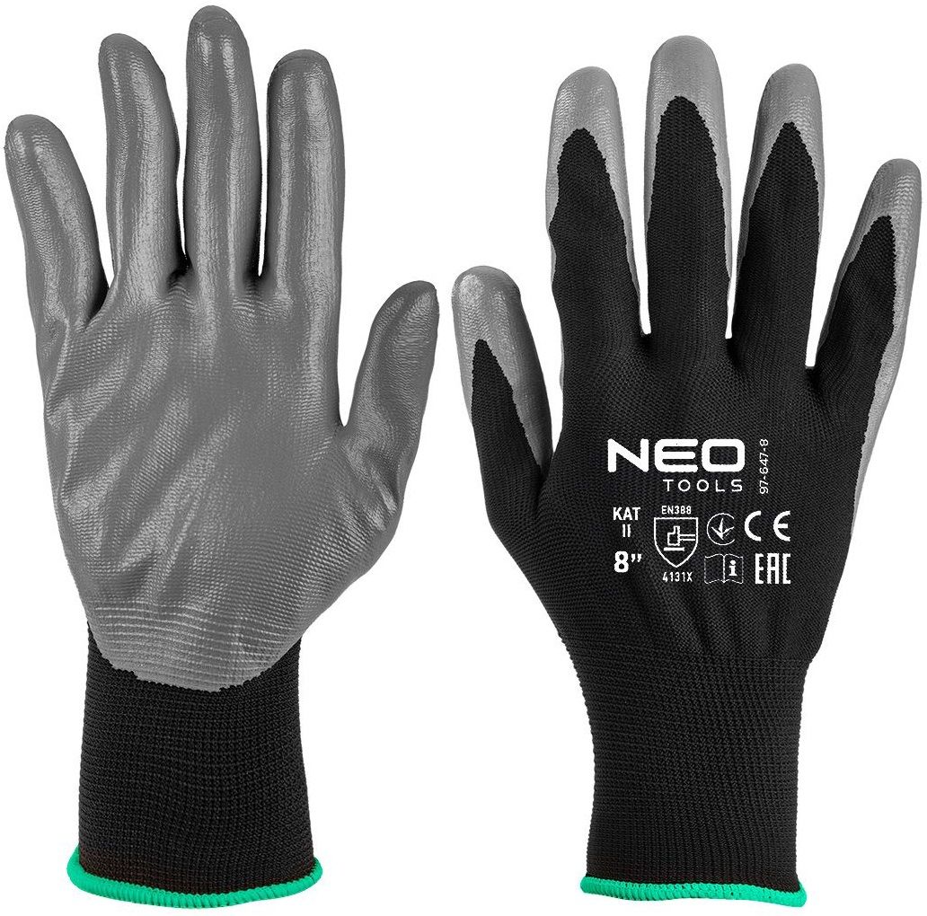 Рукавички робочі Neo Tools поліестер з нітриловим покриттям, р.8, сіро-чорний