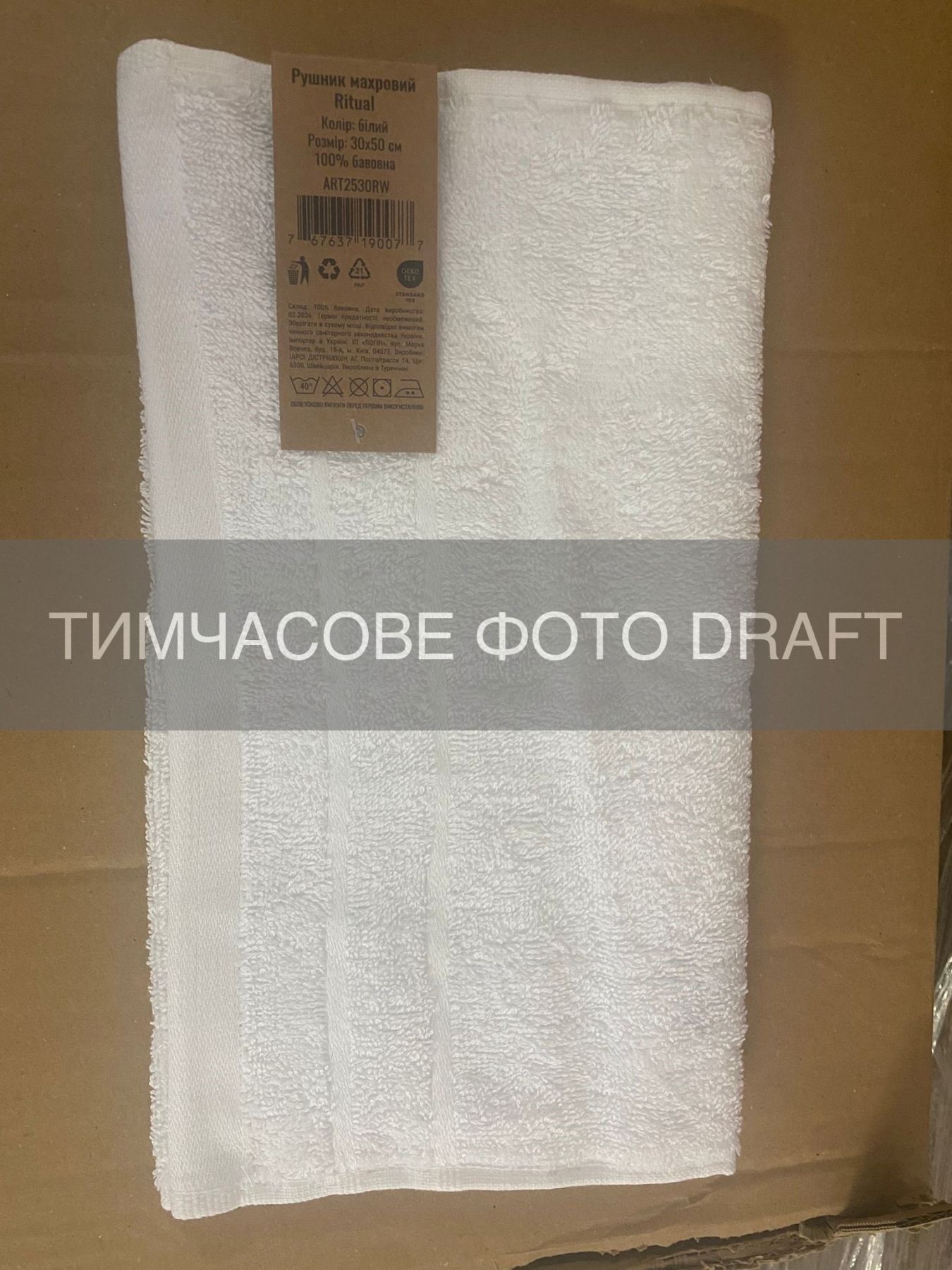 Рушник махровий ARDESTO Ritual 30х50см, 100% бавовна, білий