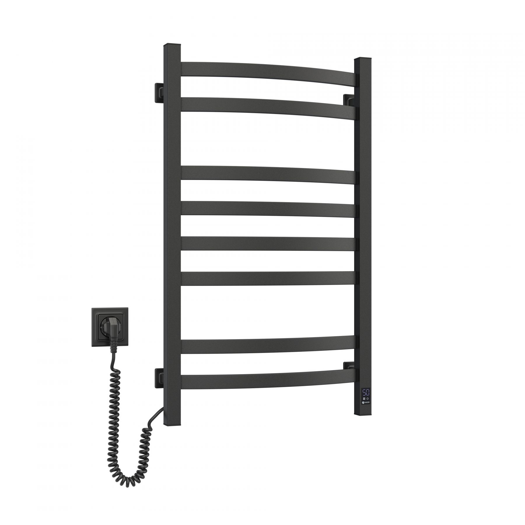 Електрична рушникосушарка Navin Avalon 12-203153-4880 у кольорі чорний муар поєднує міцність сталевої конструкції та сучасне сенсорне керування з таймером. Вісім секцій у формі драбинки забезпечують рівномірний нагрів і зручне сушіння рушників. Потужність 145 Вт забезпечує стабільну роботу з контролем температури до 55°C. Порошкове покриття підвищує стійкість до корозії та механічних впливів. Ліве розташування шнура робить монтаж зручним у різних типах інтер’єрів.