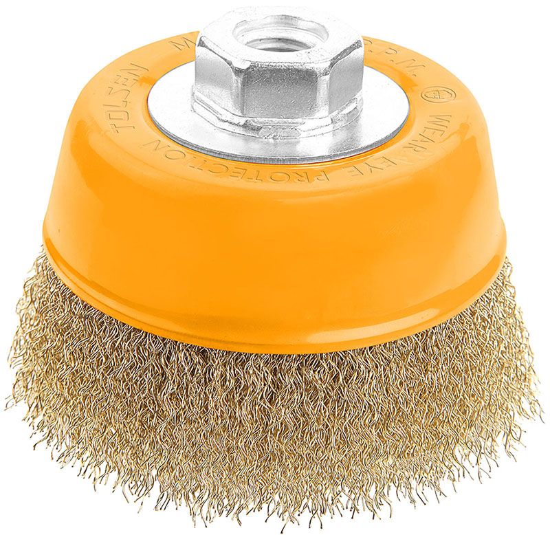 Щітка чашкова Tolsen Профі, торцева, рифлений дріт 0.3мм, 75мм, різьблення M14