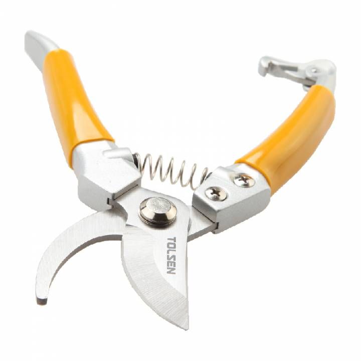Секатор контактний Tolsen Профі 31032 довжиною 200 мм оснащений полірованими лезами з нержавіючої сталі для точного та чистого зрізу. Руків’я з цинкового сплаву має порошкове покриття та ПВХ-накладки для комфортного захоплення. Оснащений спіральною пружиною з демпфером і гачком для безпечного зберігання в закритому вигляді.