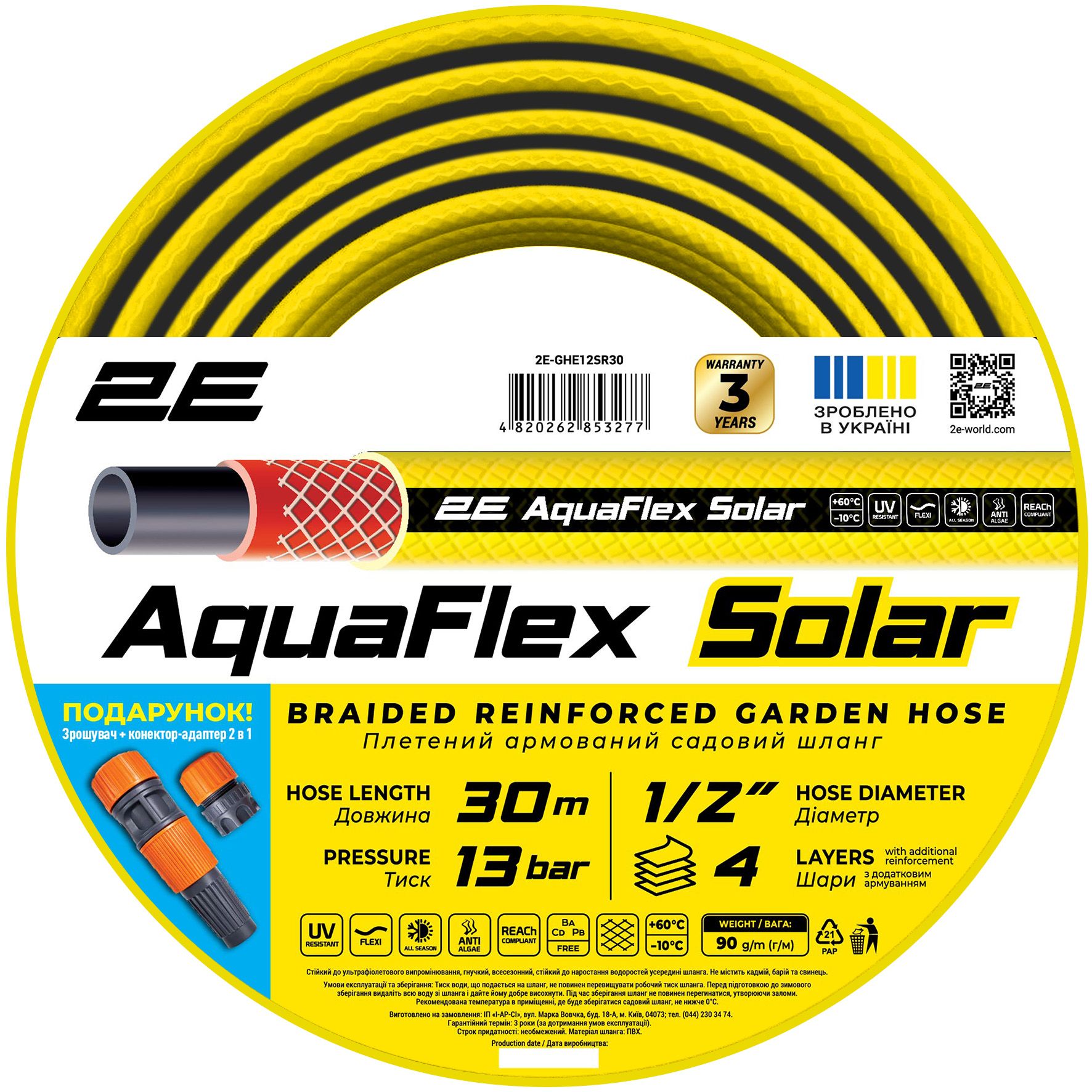 Шланг садовий 2Е AquaFlex Solar 1/2" 30м 4 шари 13бар -10+60°C зрошувач конектор адаптер 2в1