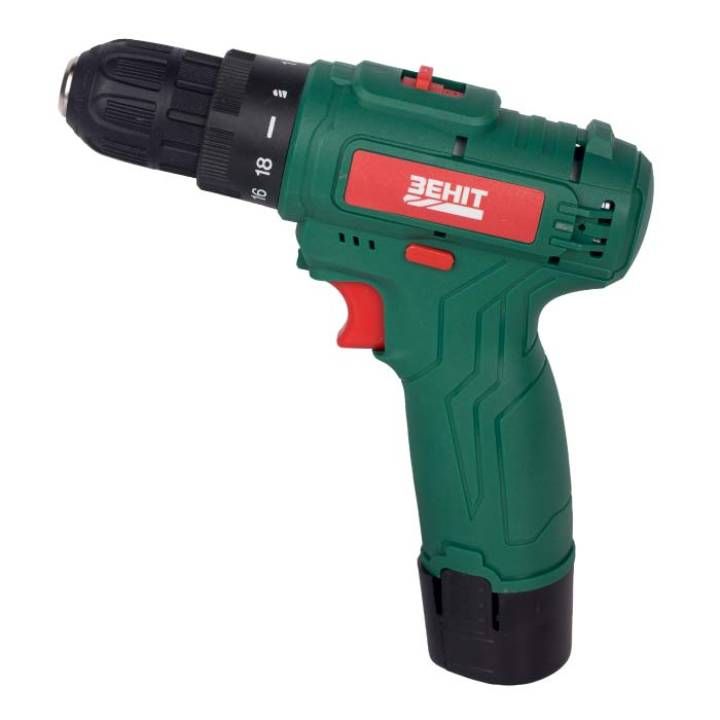 Шурупокрут-дриль акумуляторний Зеніт ЗША-12/15 S2 12В 2х1.5А·год 18Нм 350·1350об/хв 1кг кейс