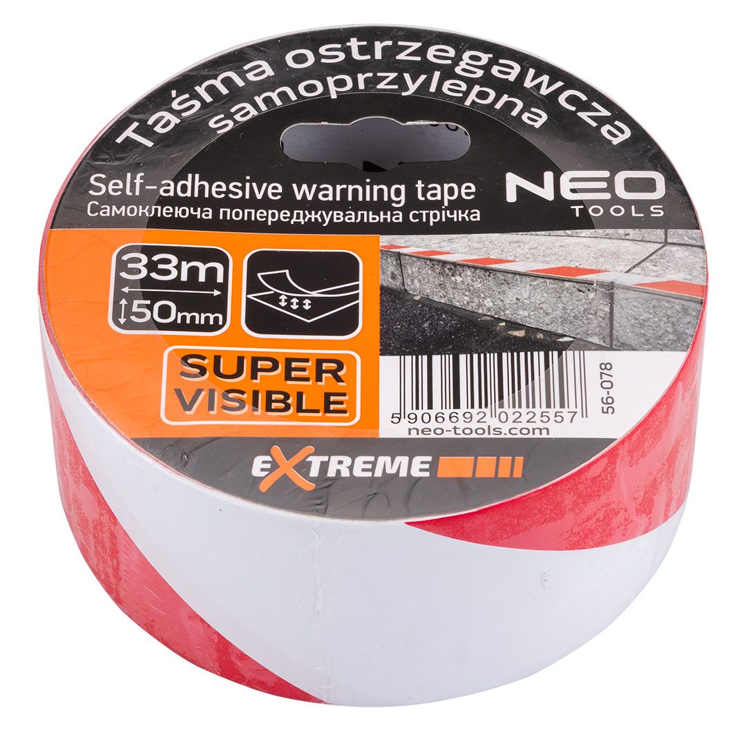 Стрічка попереджувальна клейка Neo Tools, 50мх33мм, червоно-білий