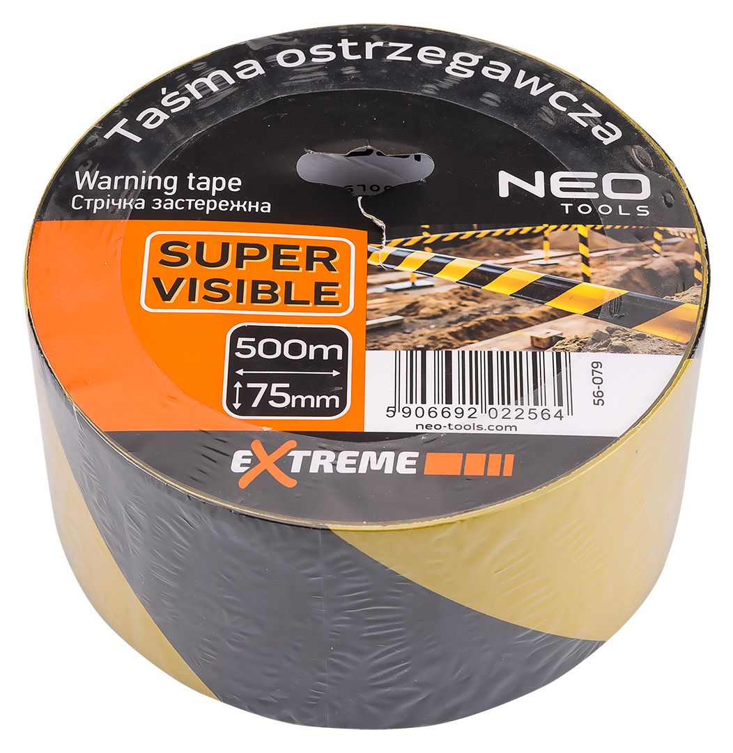 Стрічка попереджувальна Neo Tools, 500мх75мм, жовто-чорний