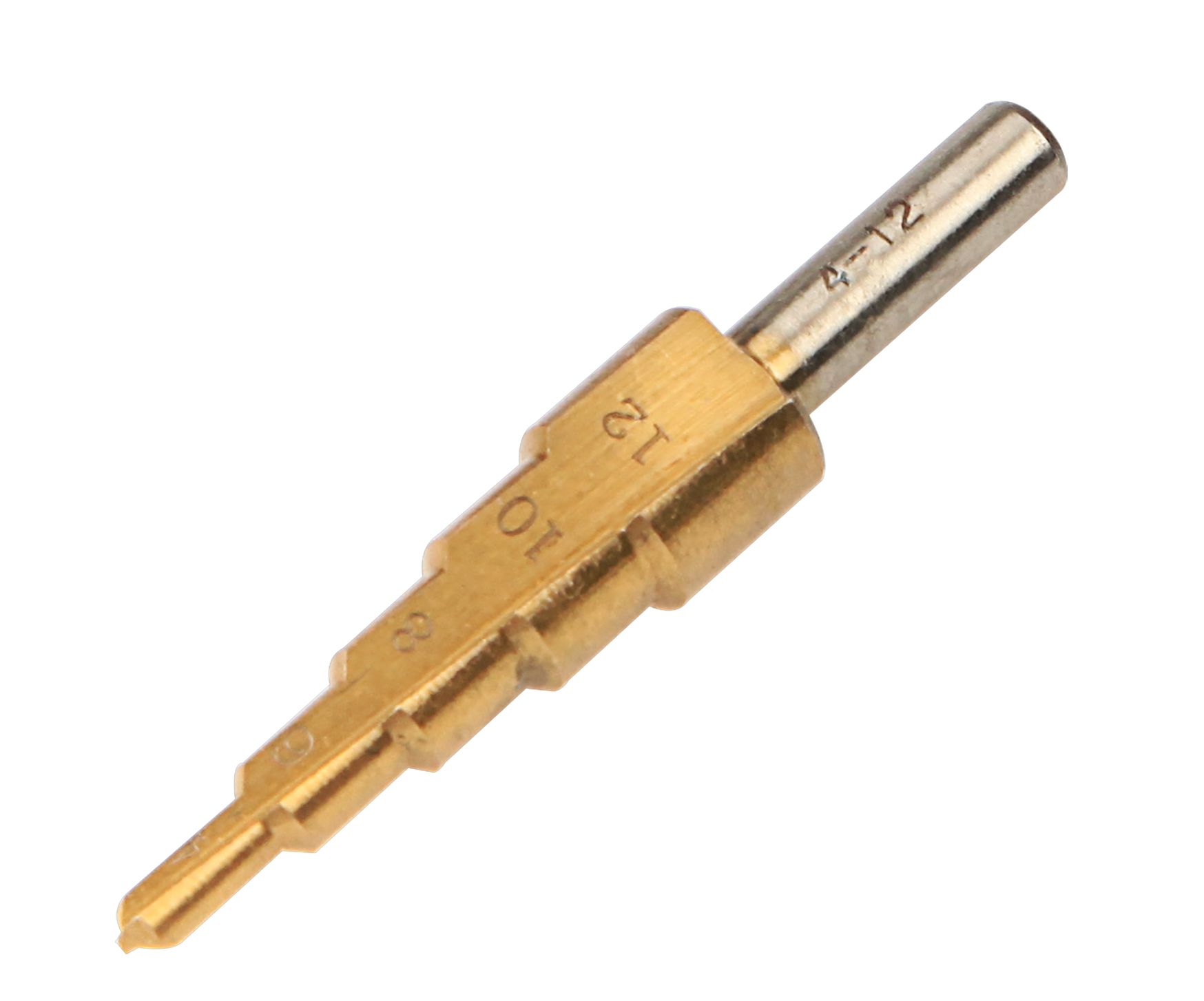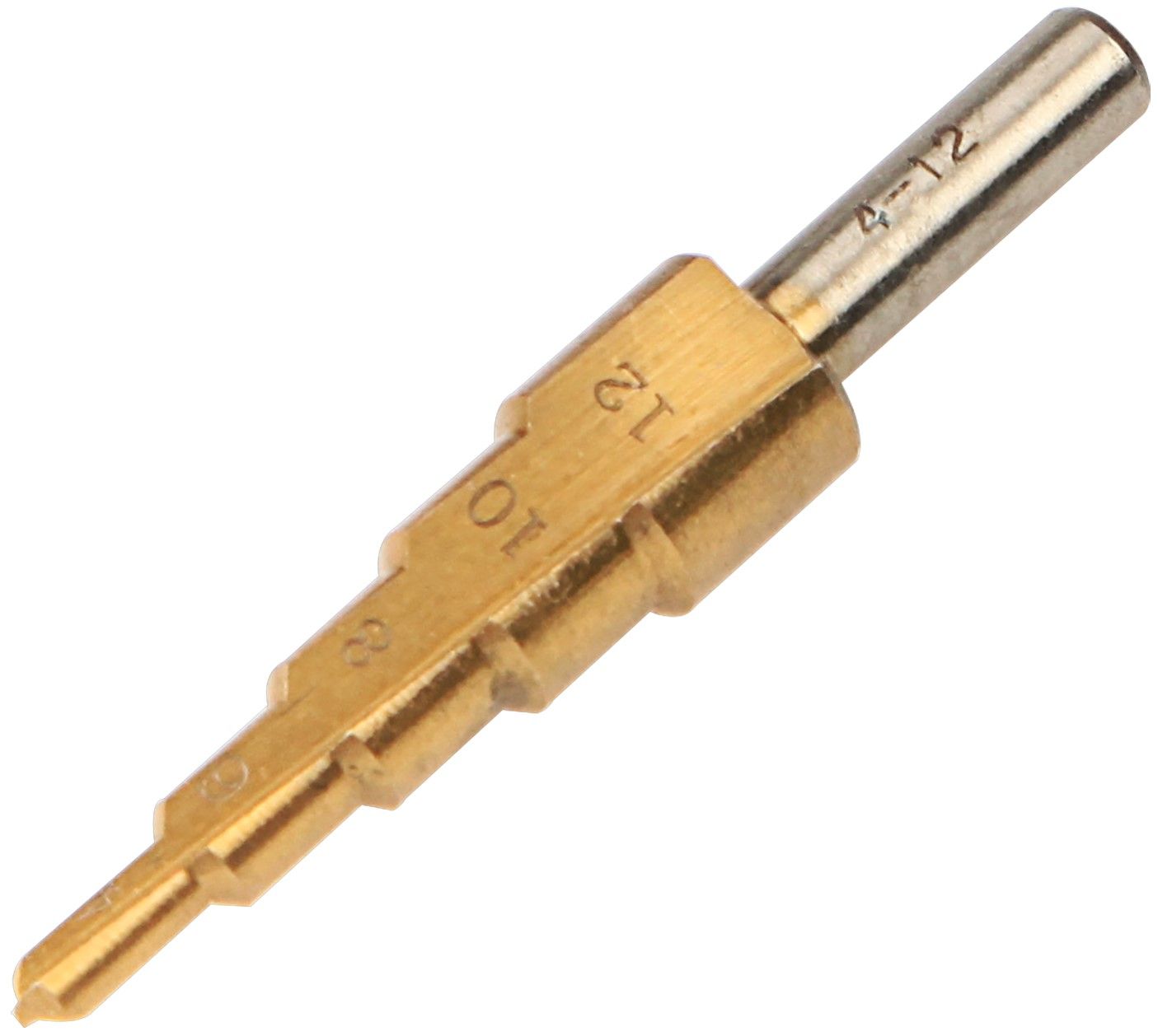 Ступінчасте свердло Tolsen 75871 (4-12 мм) виготовлене з швидкорізальної сталі HSS з титановим покриттям, що забезпечує зносостійкість і довговічність. Призначене для свердління металу та інших твердих матеріалів.