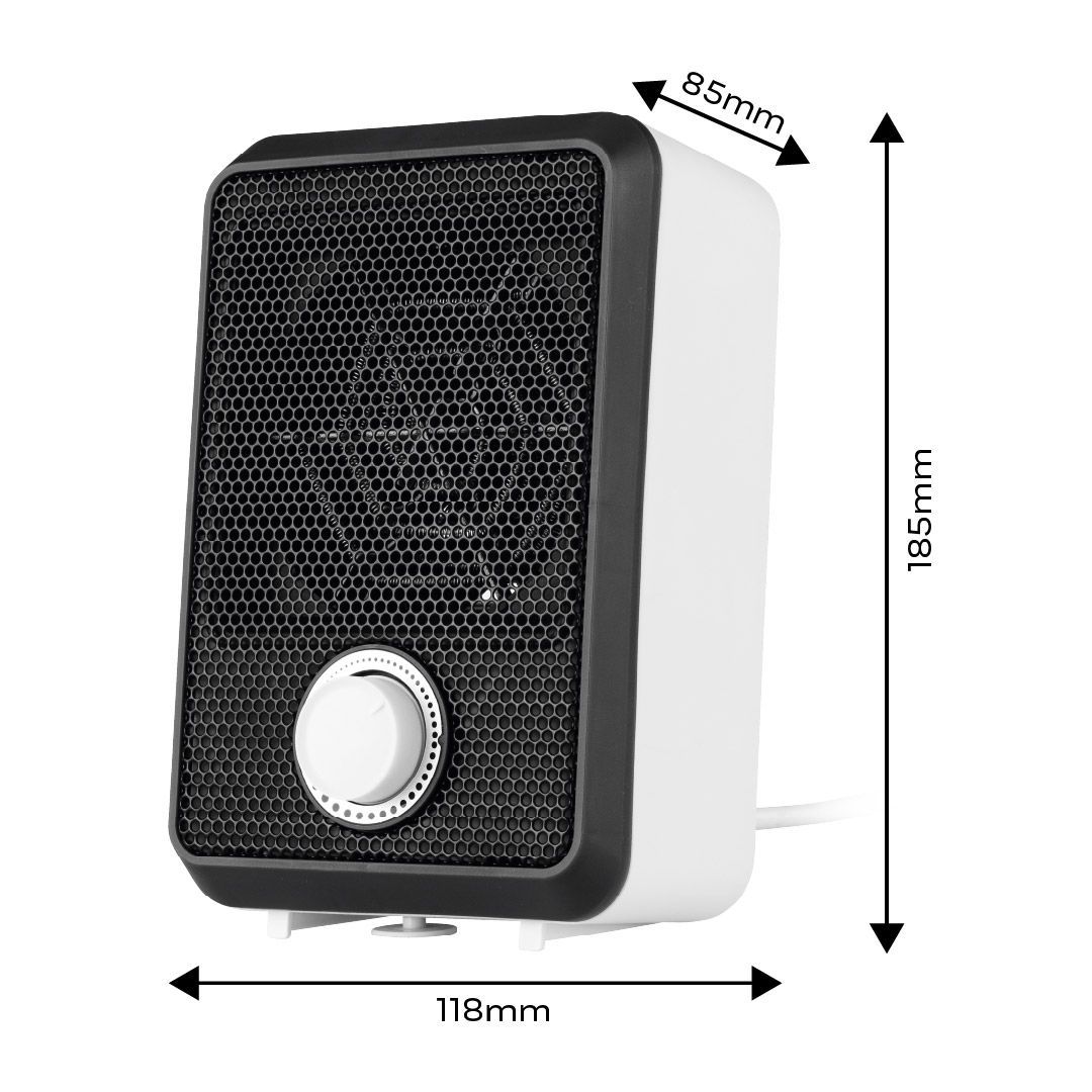 Тепловентилятор електричний настільний Neo Tools, 600Вт, термостат, білий, 0.62кг