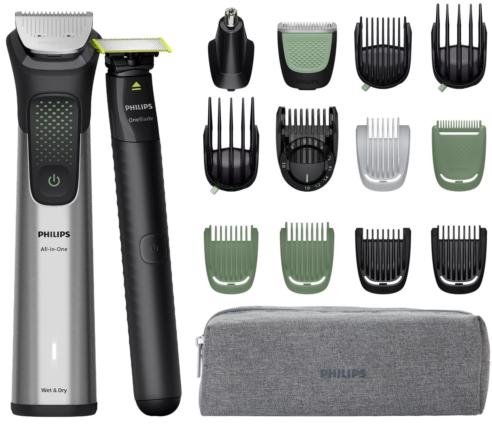 Тример Philips Series 9000, для обличчя, голови, тіла, акум., насадок-17, OneBlade в компл., сталь, сірий