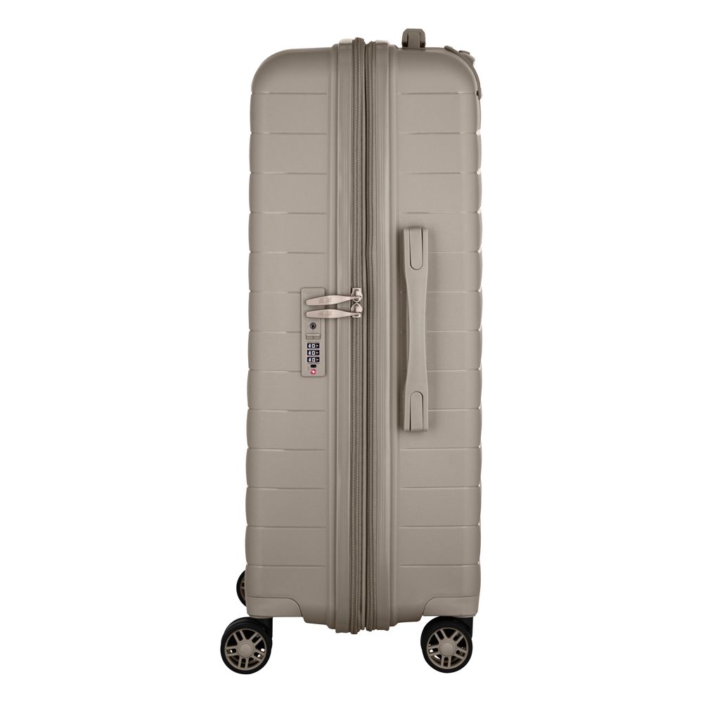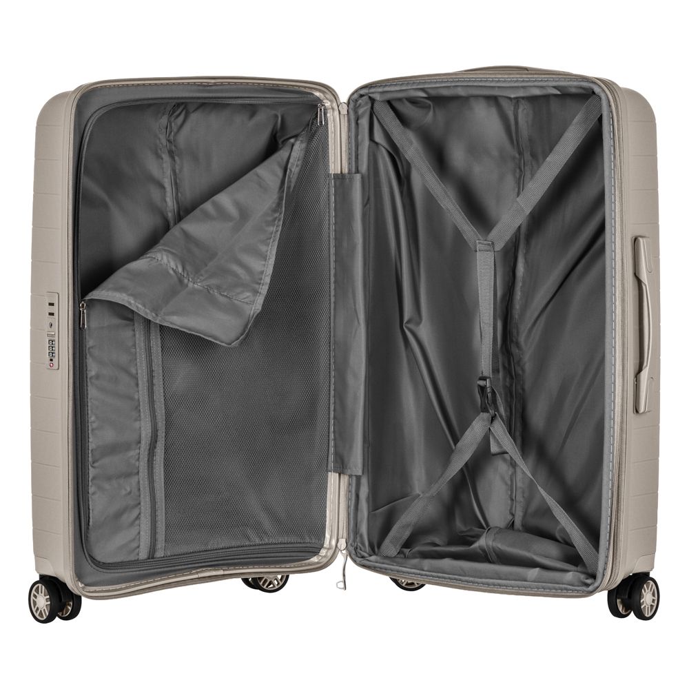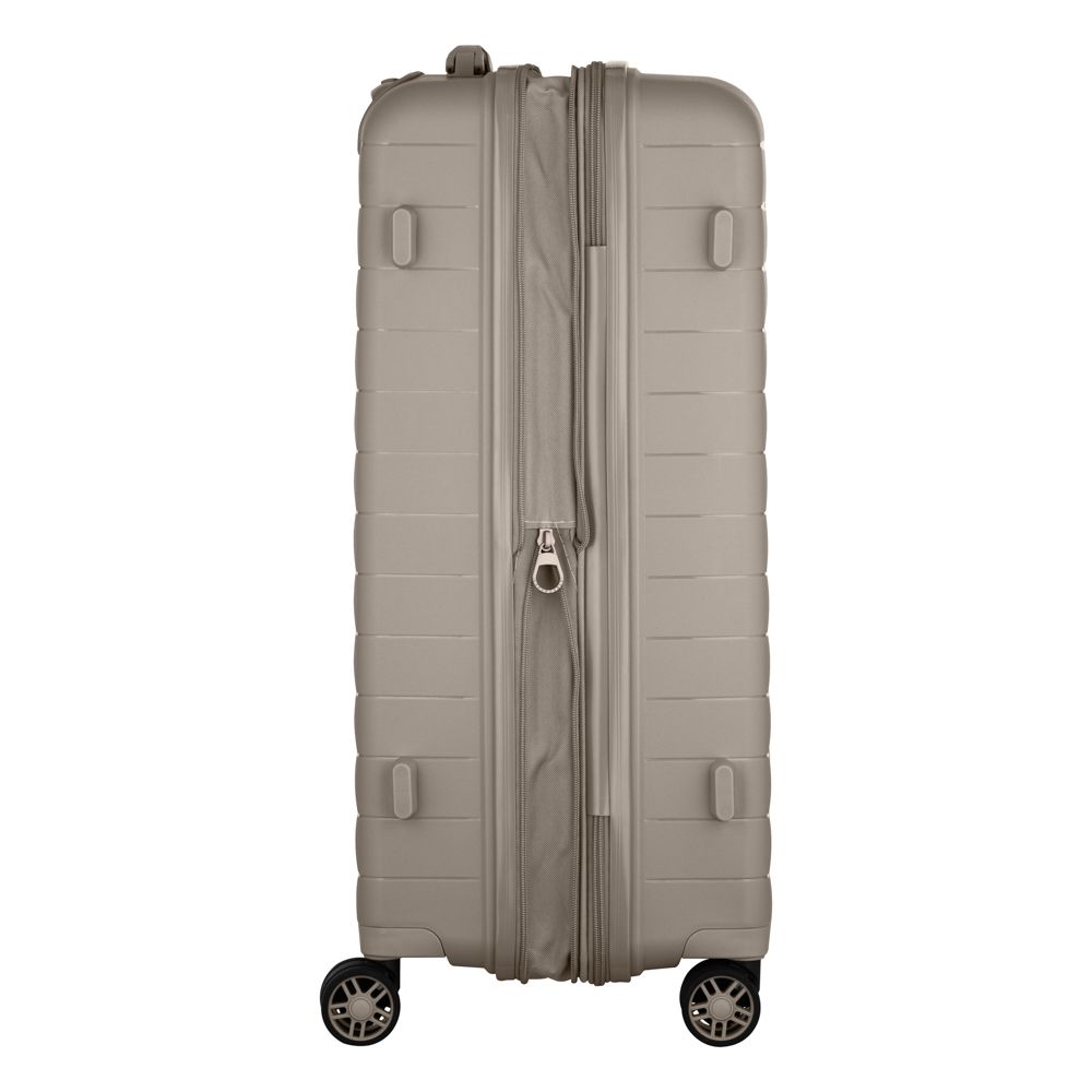 Особливості:можливість розширення (збільшення об'єму), замок TSA, подвійні колеса, передбачено розділювачі та регульовані пакувальні паски всередині