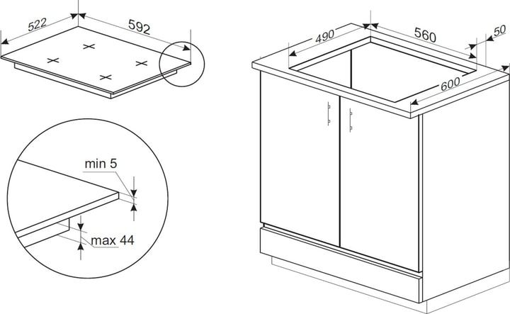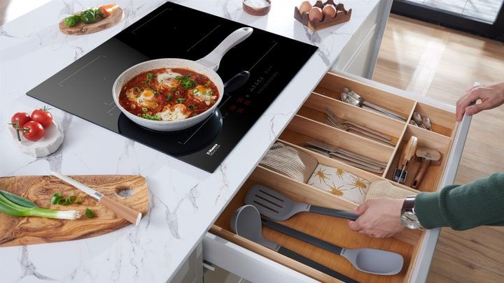 Функції:пауза, функція підтримки тепла, керування потужністю, звуковий таймер, датчики встановленого посуду, таймер автоматичного вимкнення, короткочасне збільшення потужності (Booster), автоматичне об'єднання зон нагрівання, автоматичне визначення зони нагріву (Hob and Go), сенсор (Direct Touch), слайдерне керування, виявлення маленьких об'єктів, обмежувач за часом