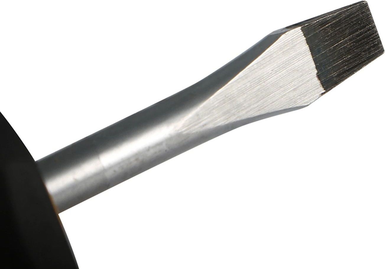 Викрутка Tolsen Ерго SL6.5x38 мм із хромованадієвої сталі (CrV) призначена для роботи з кріпленнями із прямим шліцом, забезпечуючи надійний хват і зручність навіть у вузьких або важкодоступних місцях.