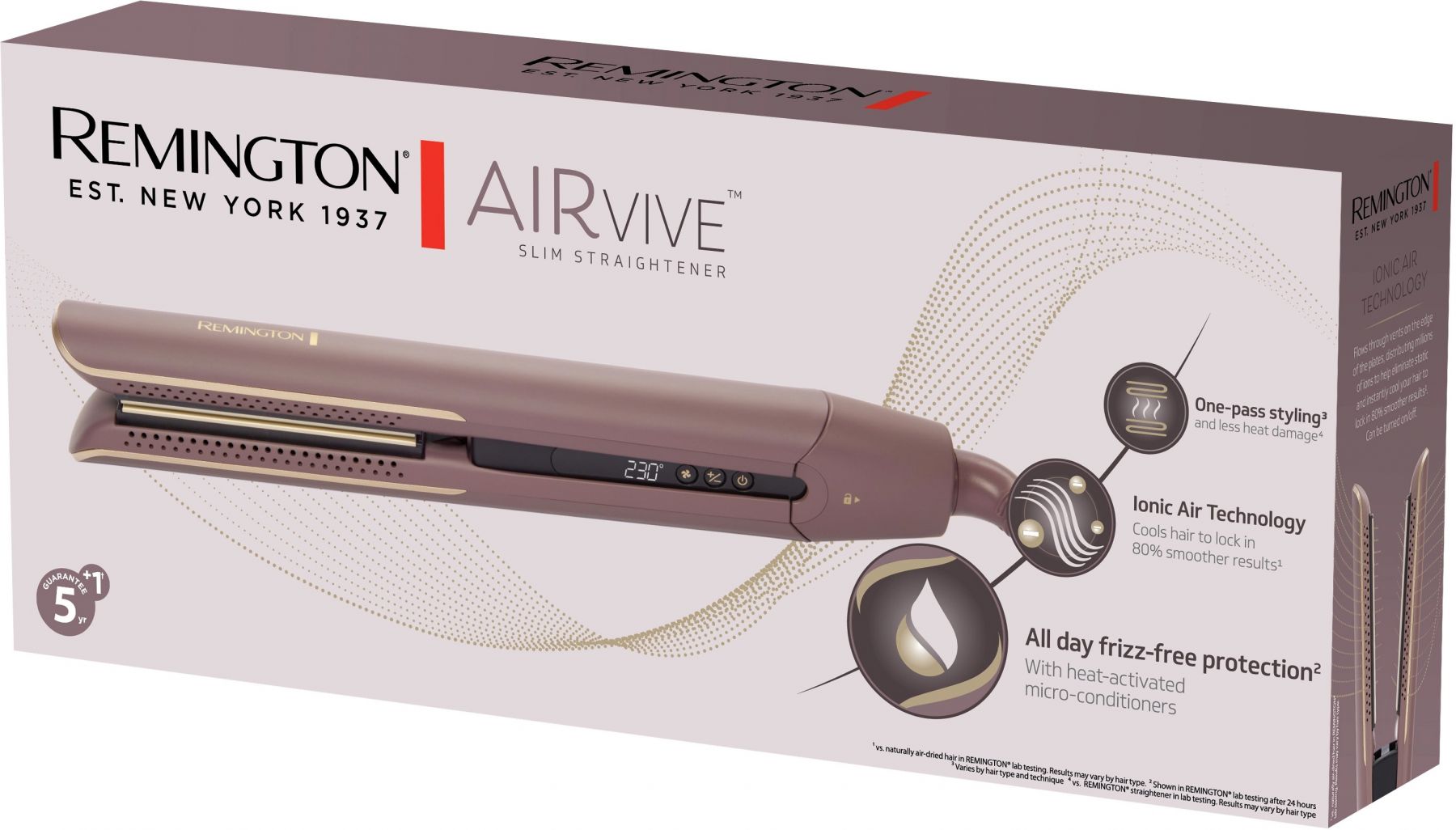 Випрямляч Remington AIRvive, 61Вт, темп.режимов-5, 150-230С, дісплей, кераміка, фіолетово-злотий