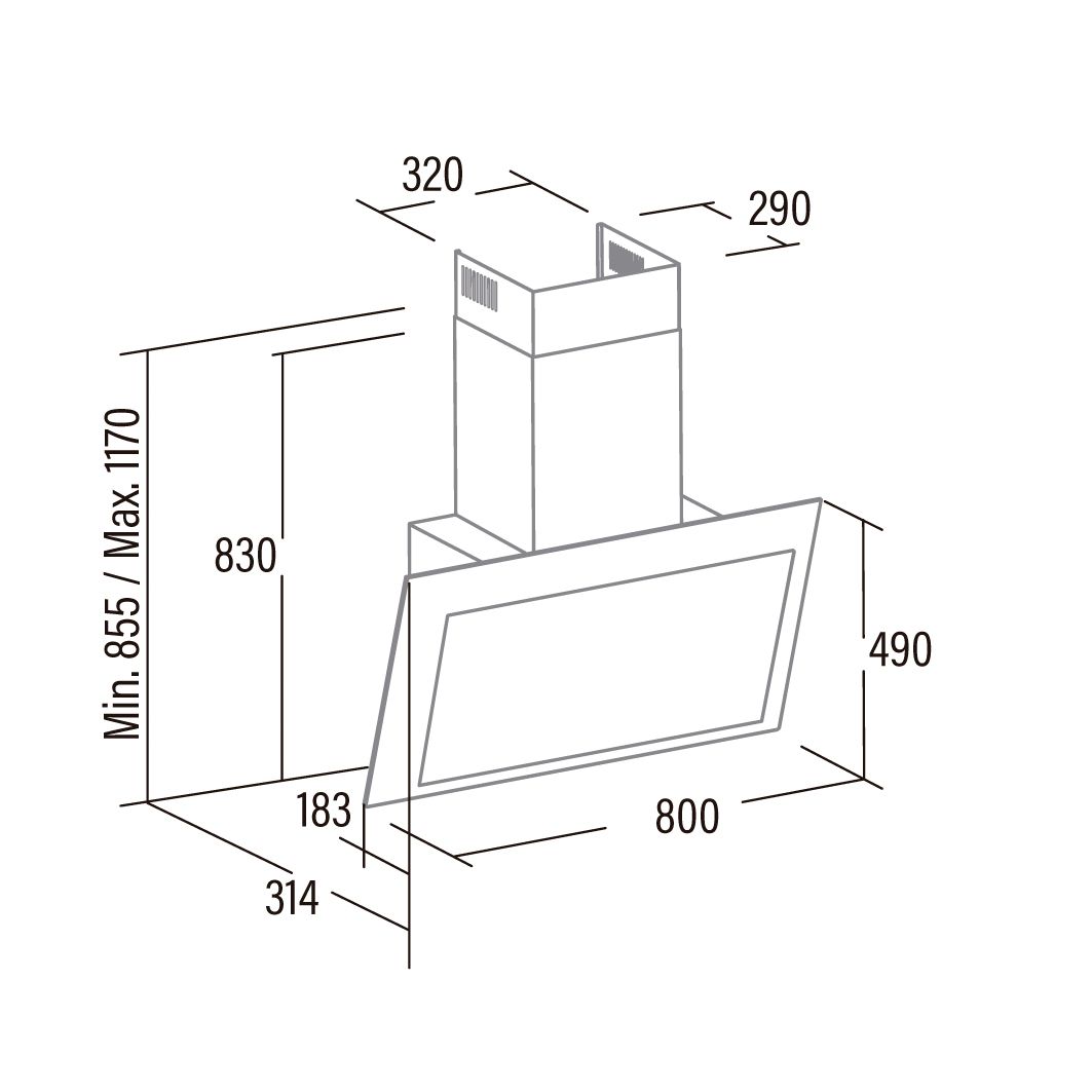 Витяжка похила Cata, 80см, 1350м.куб/год, Thalassa 800 xgwh, білий